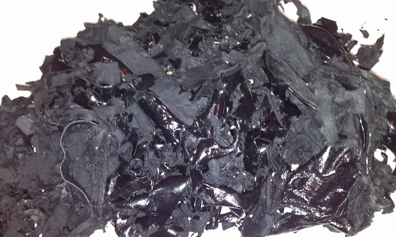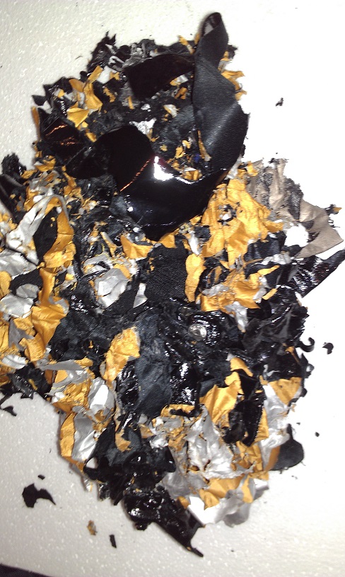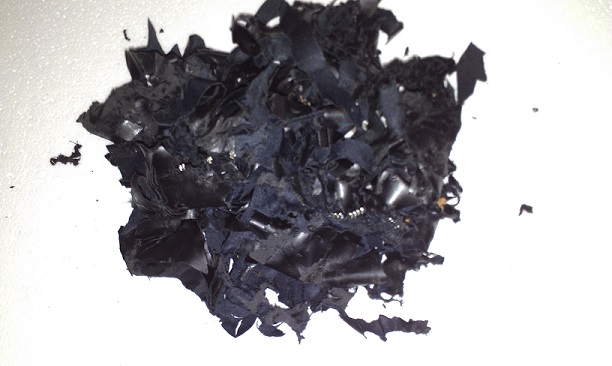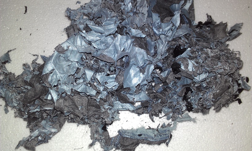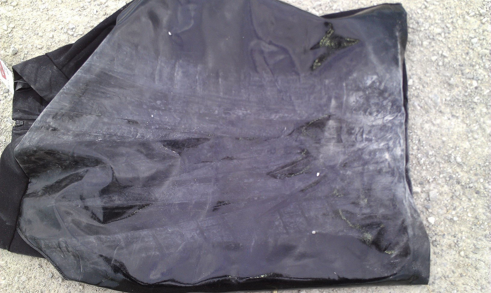 Folgendes Bild zeigt was in etwa von zwei Lackröcken übrig bleibt. Wenn man gut hinschaut erkennt man auch einen Teil eines Reissverschlusses: