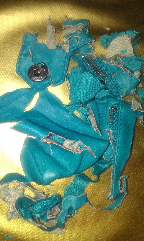 Hier noch ein paar Teile der Kunstlederjacke. Wenn man genau hinschaut, sieht man noch ein paar Zähne des Reissverschlusses.