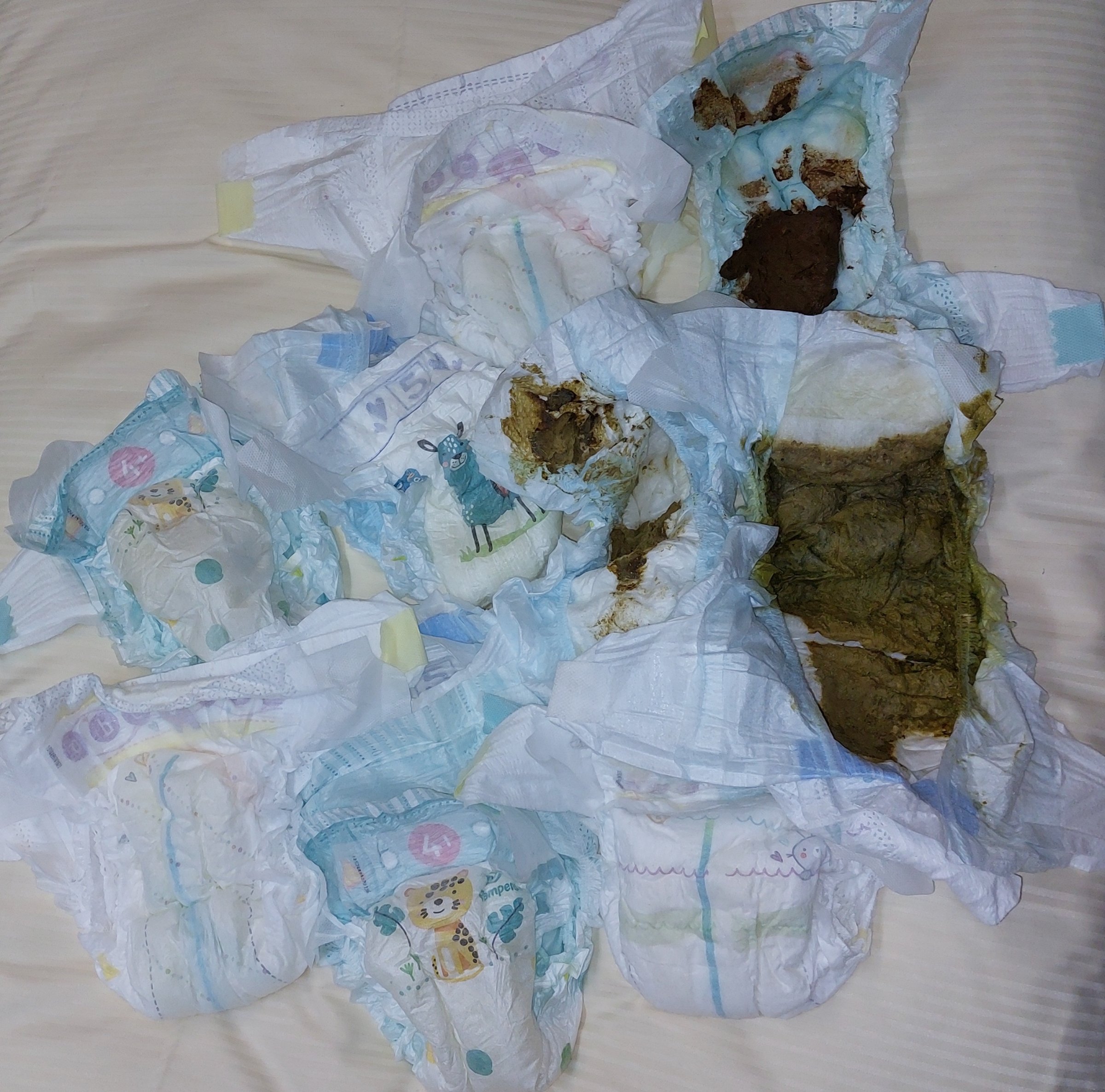 Wobei die rechte Pampers Gr. 5 bestimmt ausgelaufen ist, so voll wie die ist
