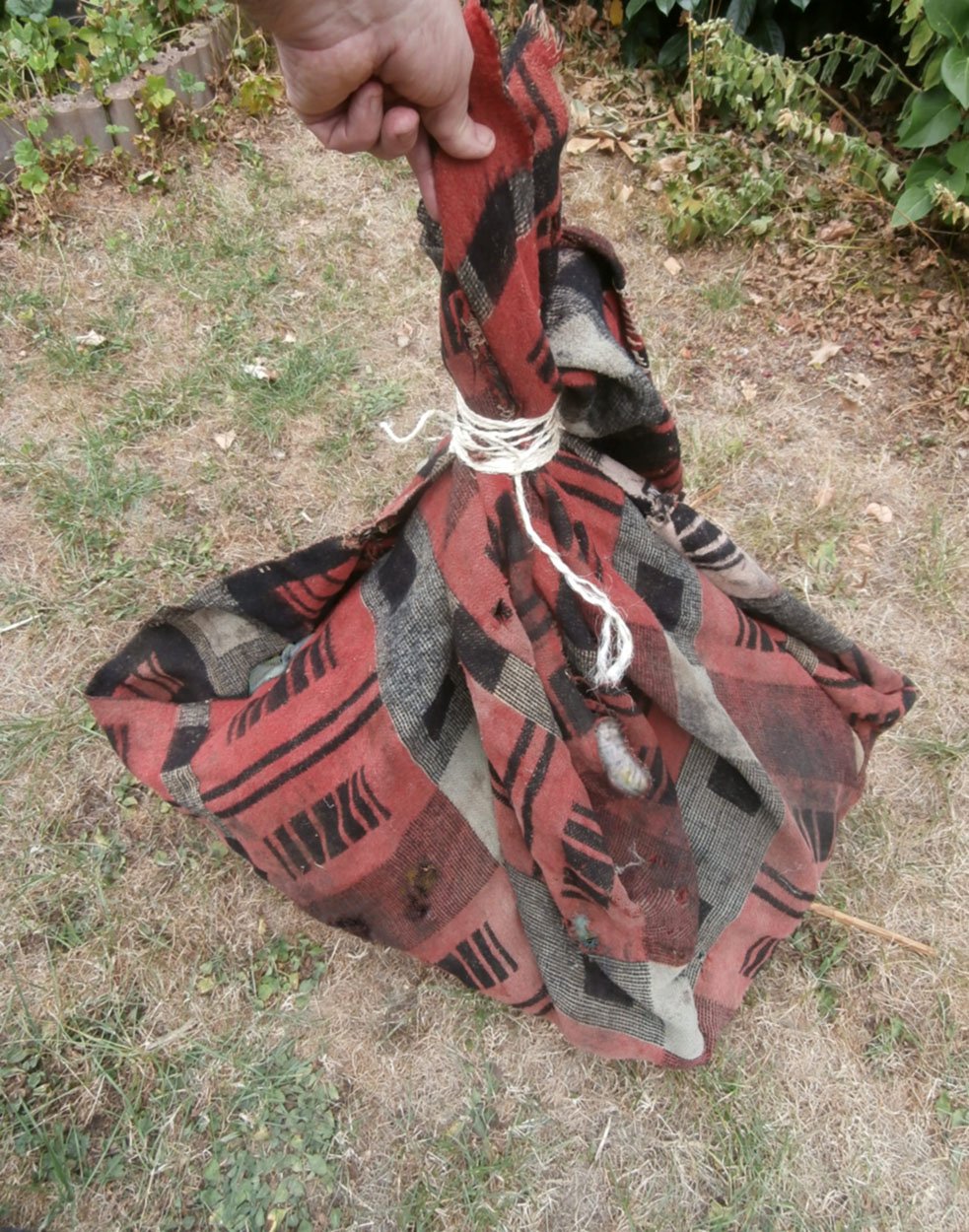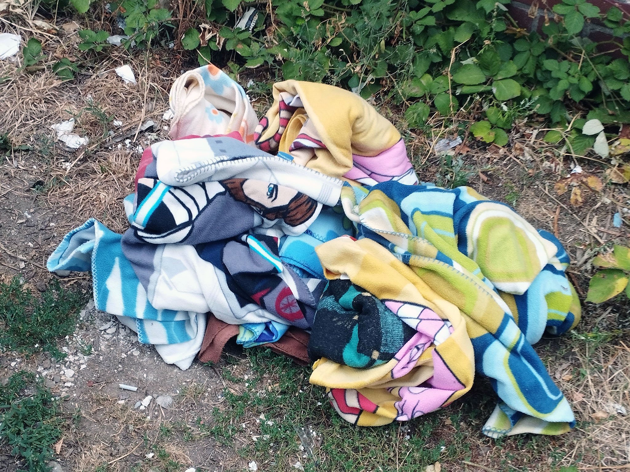 Die beiden letzten Decken waren nicht in dem Sack, liegen aber hier noch auf dem Müllstapel. Die sind beide durch und eigentlich ideal für eine Vernichtung.