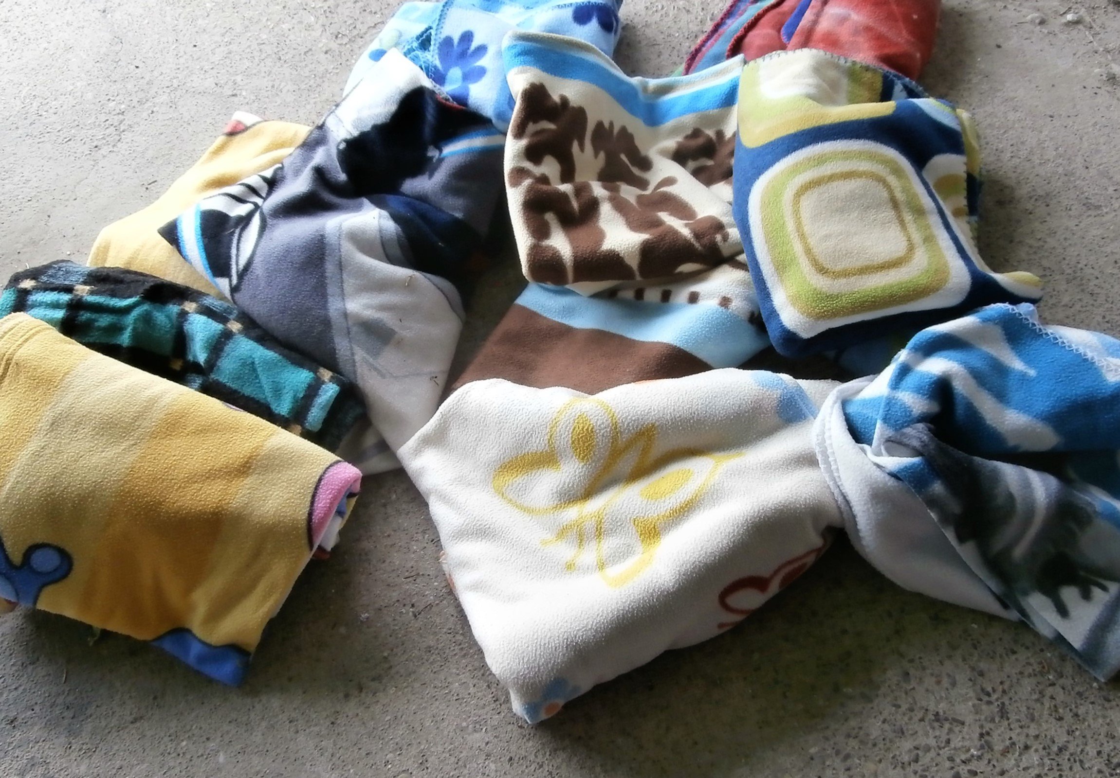 Mit den dünnen Fleecedecken kann man gut putzen. Eignen sich kleingeschnitten gut als Putzlappen.