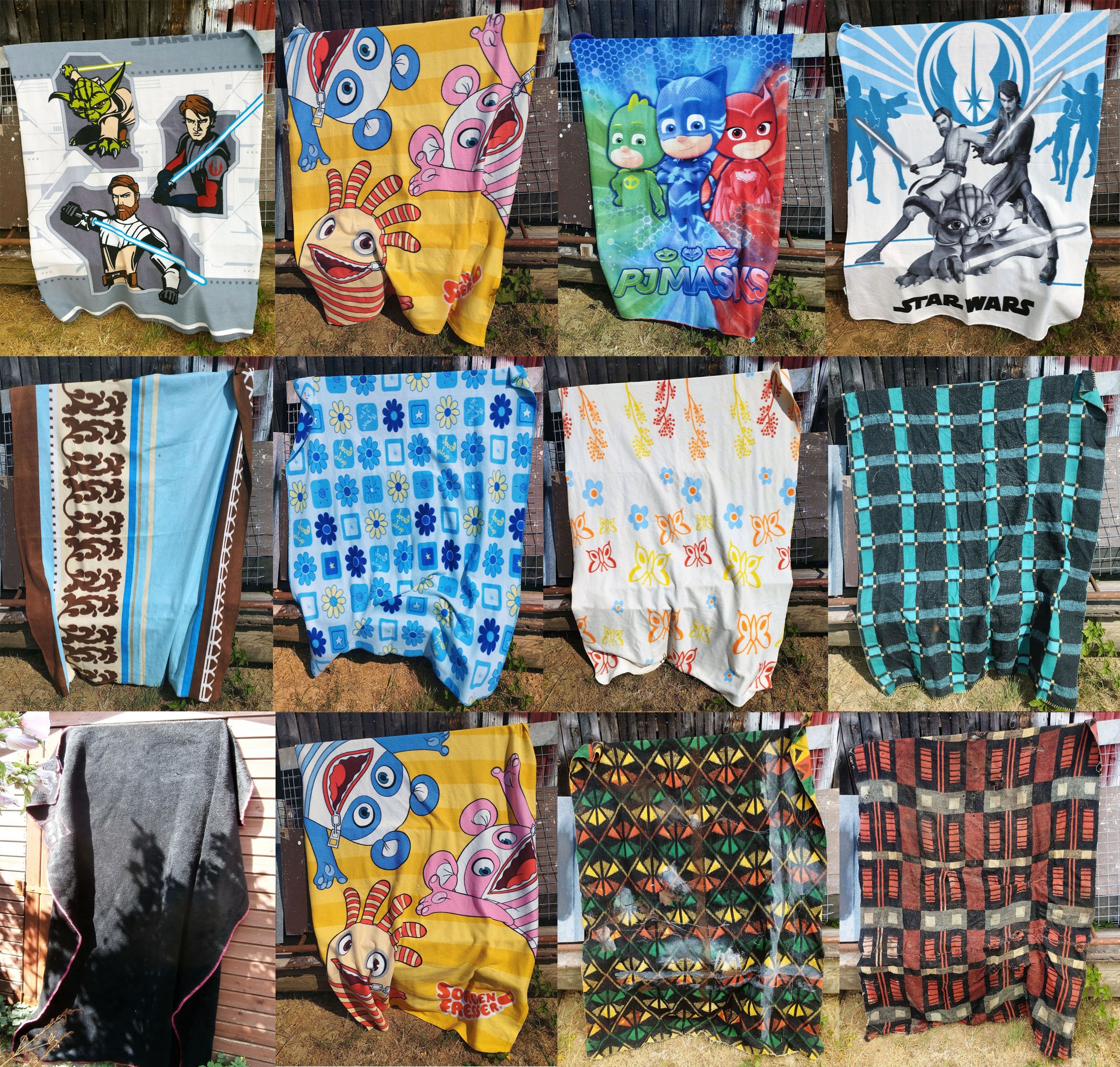 Die beiden letzten Decken auf dem Foto waren nicht von dem Altkleidercontainer. Die hatte ich noch. Die eine hatte ich als Unterlage