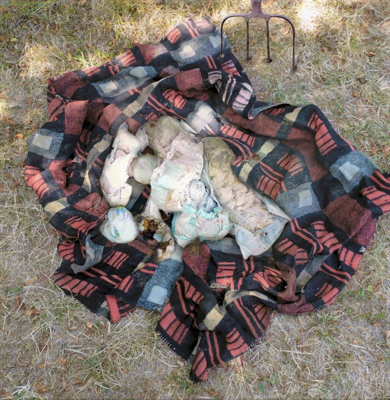Sammelunterlage benutzt. Dann habe ich mit einer Mistgabel die ganzen stinkenden Windeln auf der Decke gesammelt. Dabei sind aber ein paar