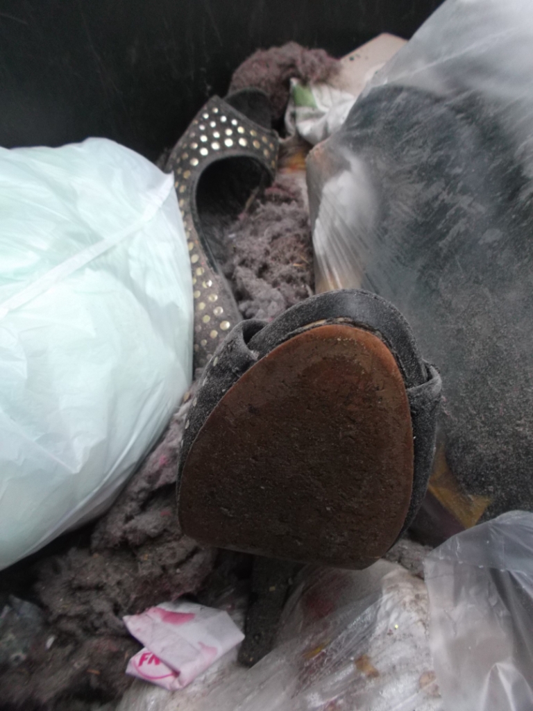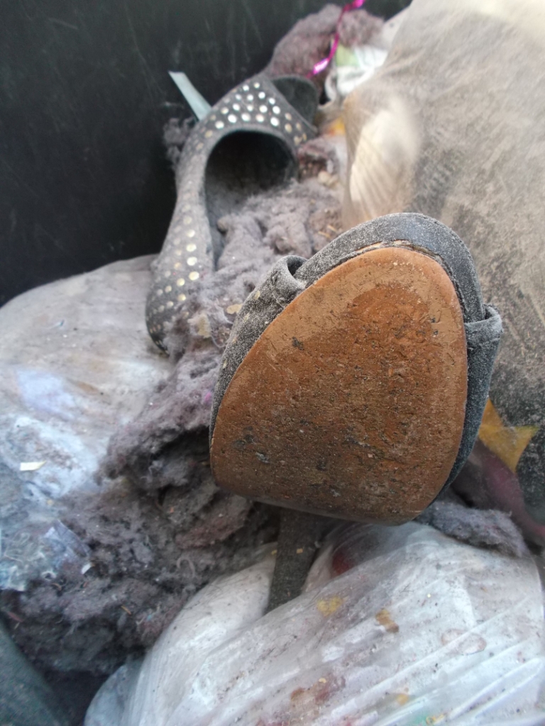 Aktuell mal wieder KEIN ENDE IM MÜLL für diese Sperrmüllschuhe (Calbe/Saale); die warten mit neuen Absatzbelägen auf neue Einsätze an den zarten Füßchen meiner NT! :)