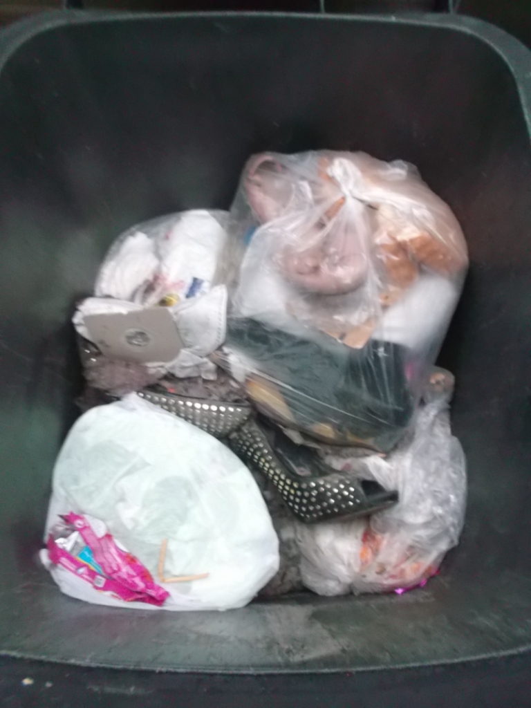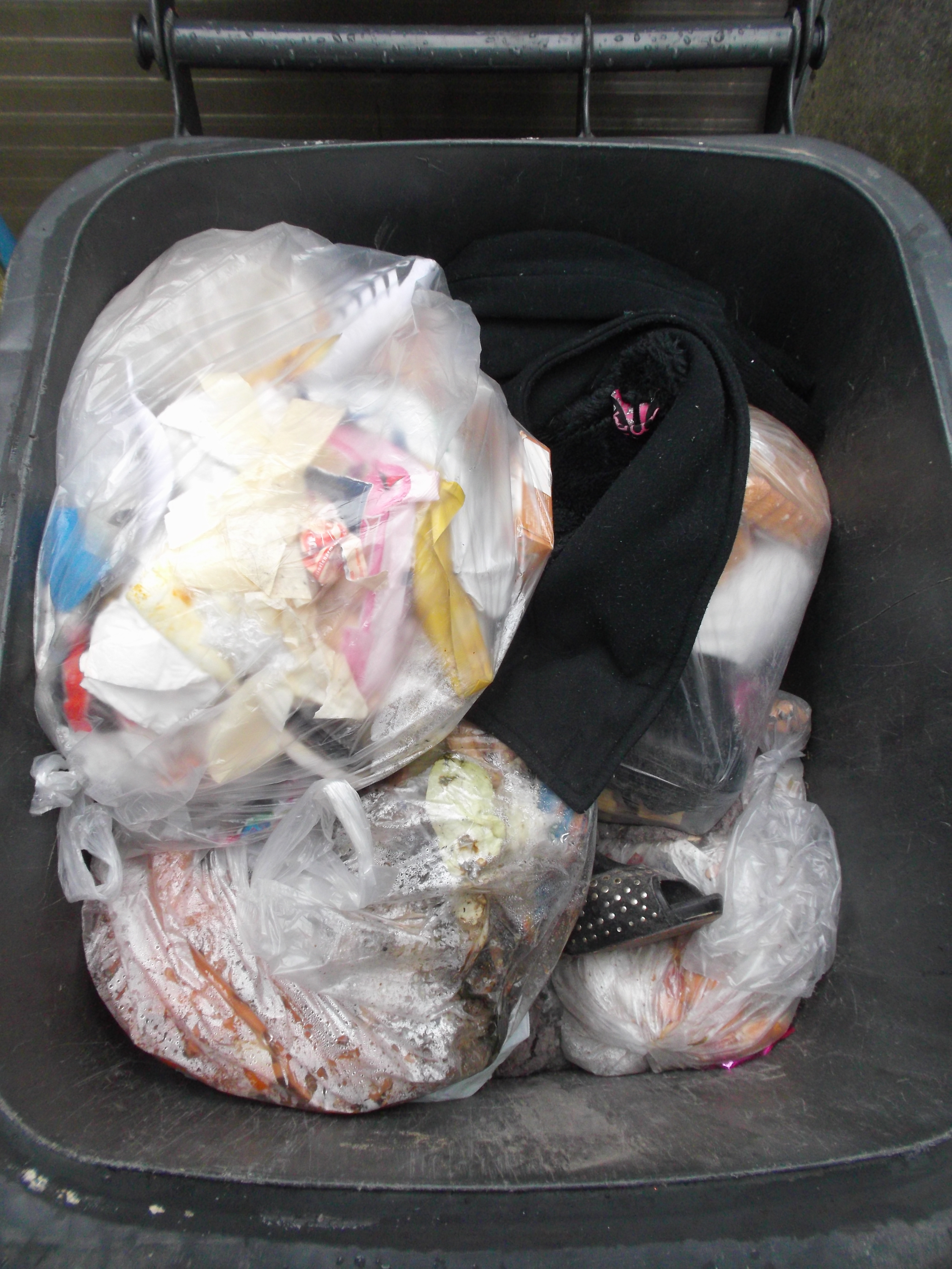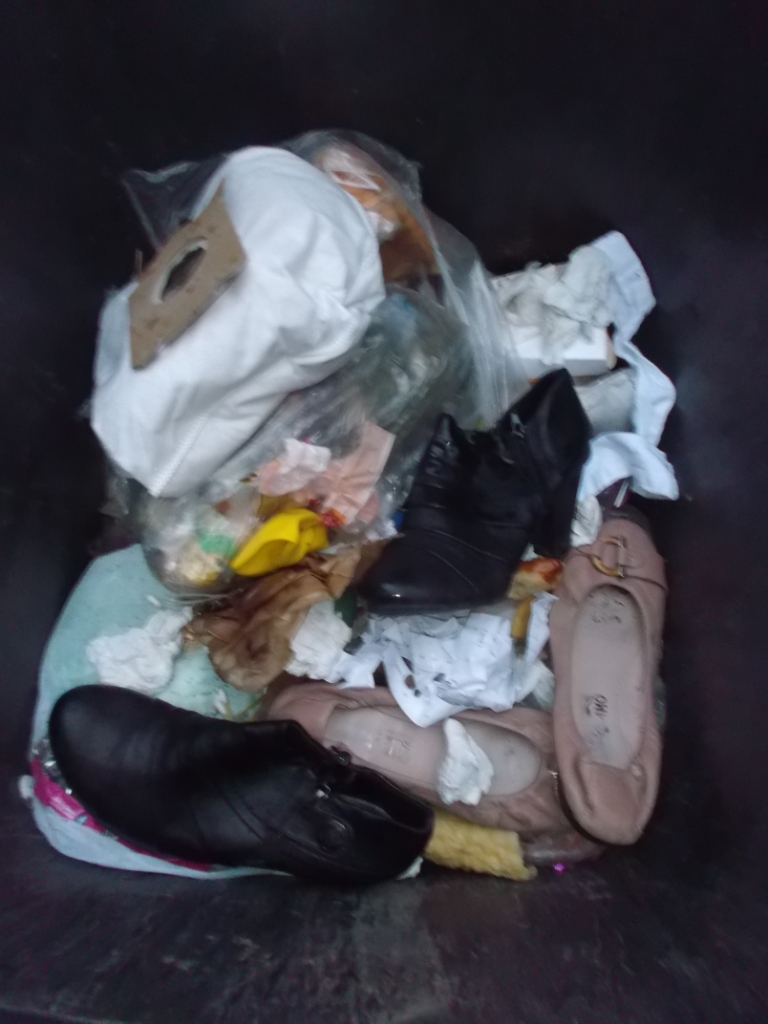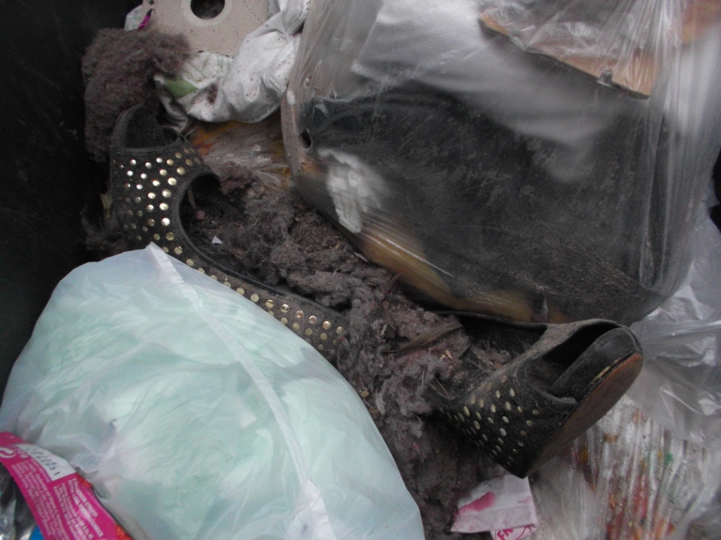 Beinahe "sauberer" Hausmüll; - wenn da der eklige Müllgestank nicht wäre, der natürlich ins Leder eingezogen war. Puuh!