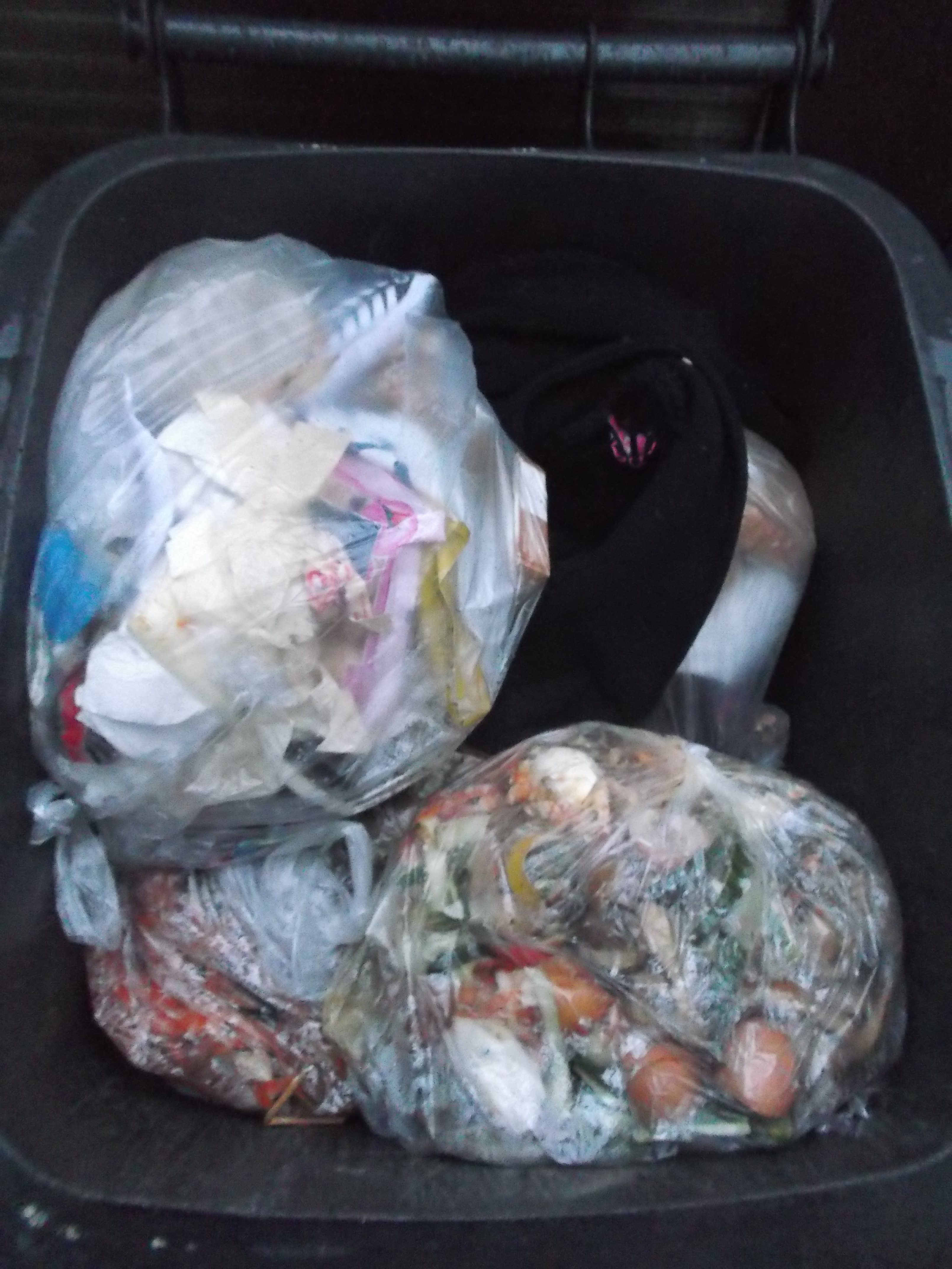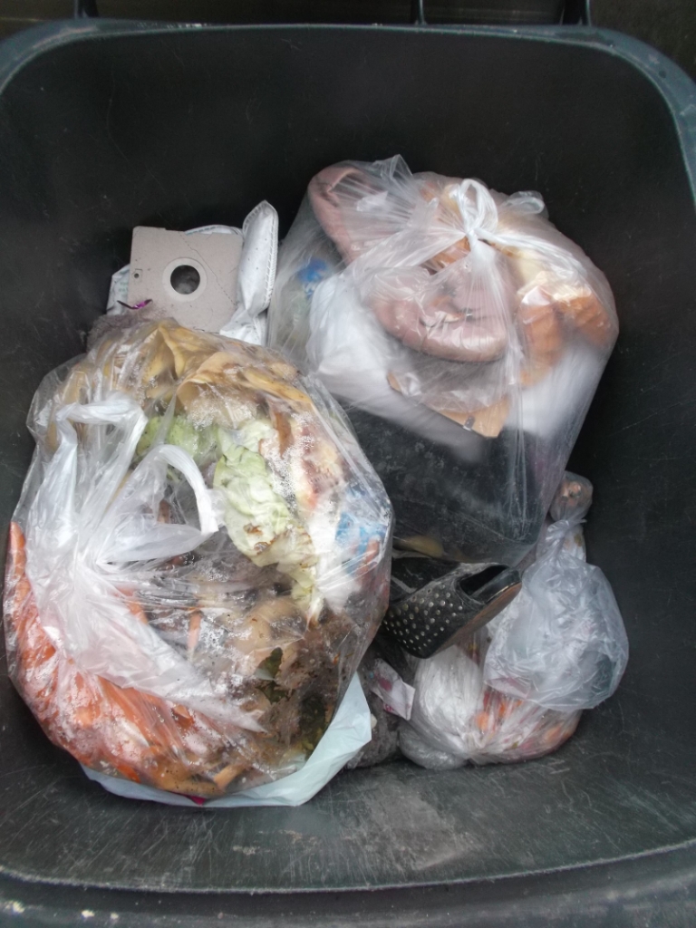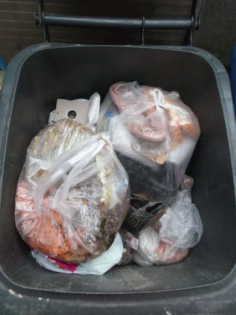 Gleich noch praktischerweise den Küchenmüllbeutel mit zur Tonne genommen.