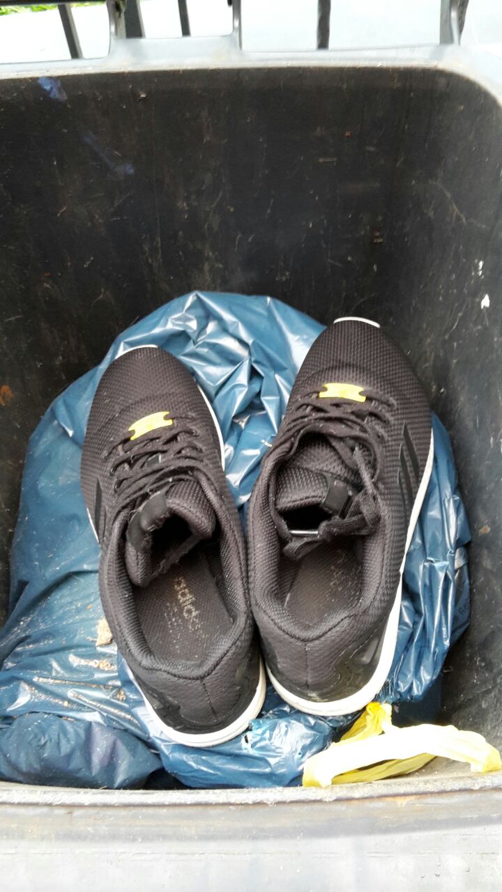 Seine Partnerin hing offenbar doch noch ziemlich an ihren Adidas und war wohl ganz froh, dass ihren Schätzchen der Reißwolf erspart bleibt.