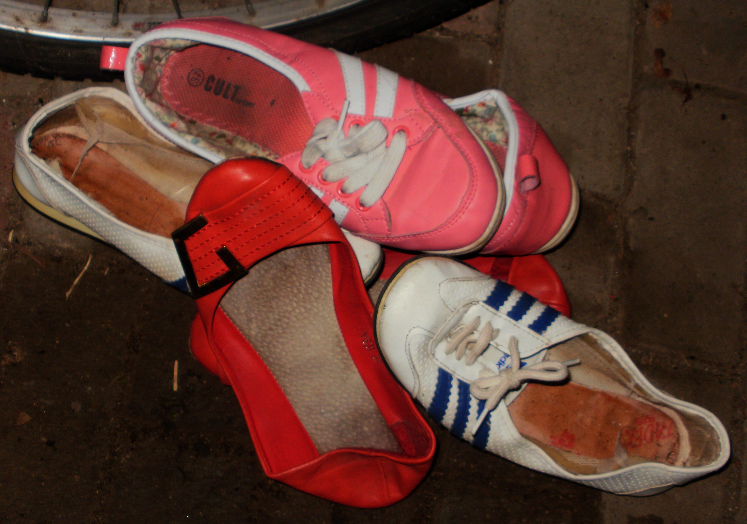 Ausgelatschte, "verkäste" und nun nach Müll stinkende Ballerinas; - was für ein ekliger Dreck.