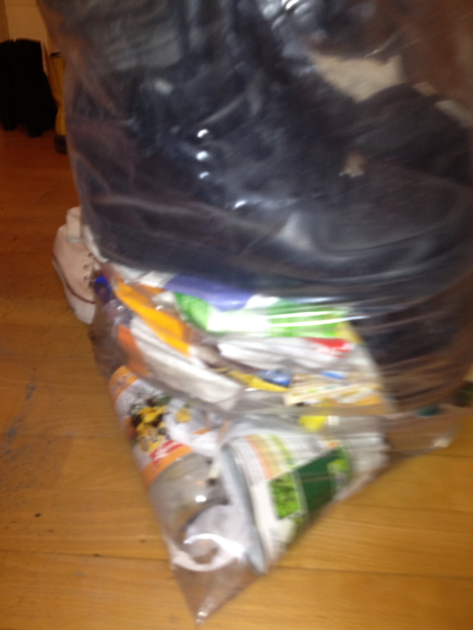 Re: ausmisten, schuhe mit müll zusammen in den beutel.