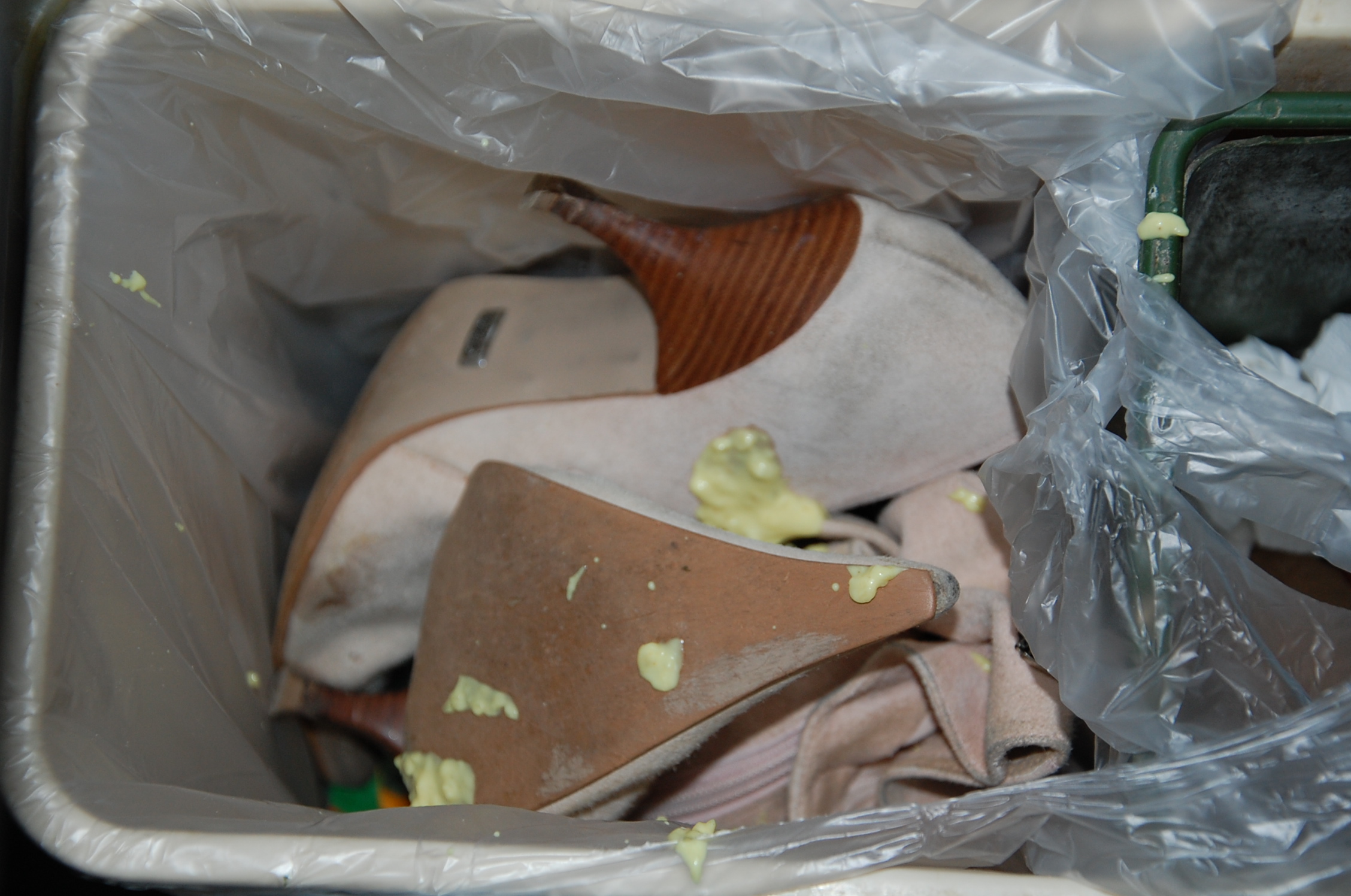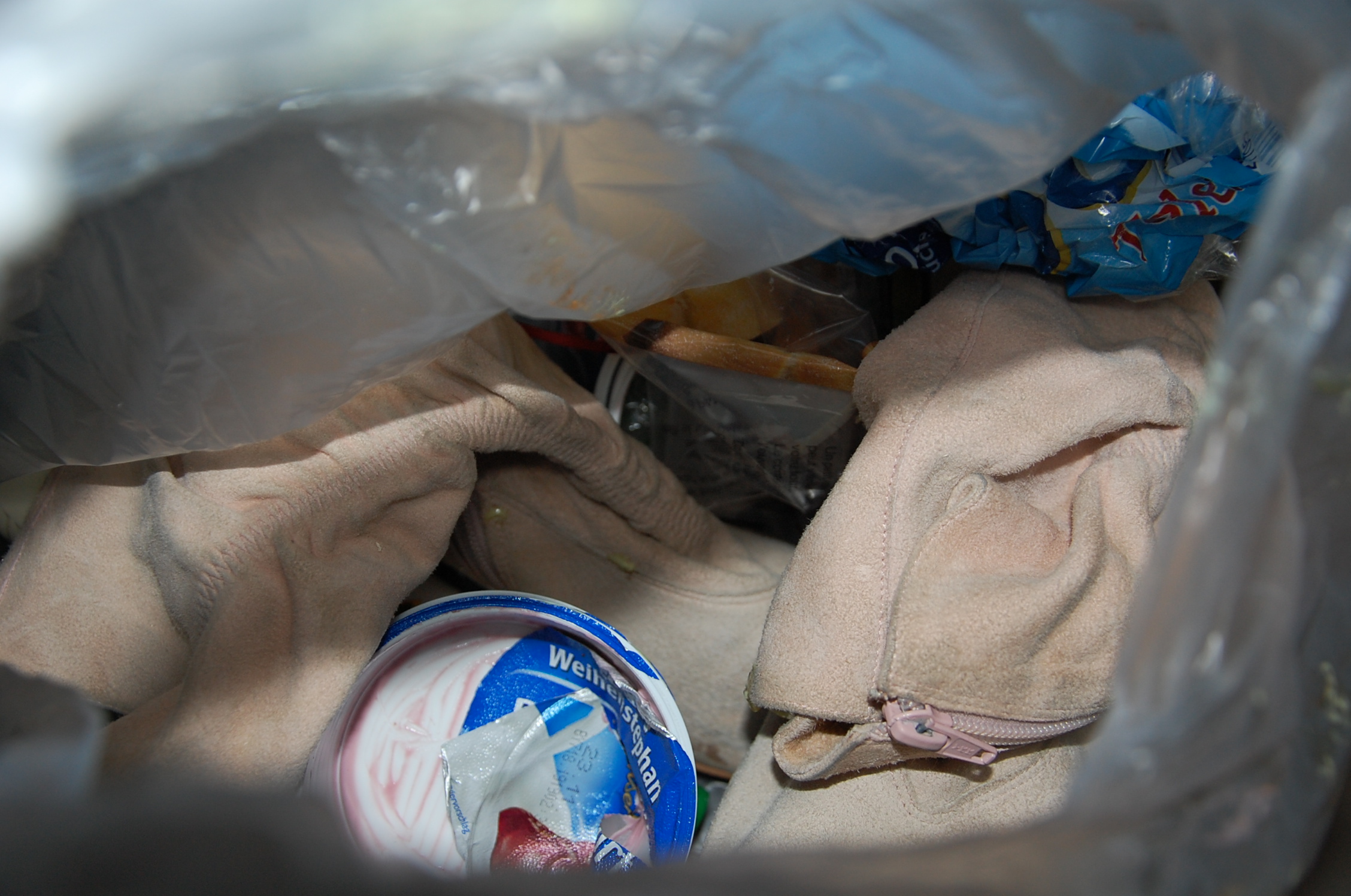Plumps, schon verschwand der herausgezogene Stiefel wieder im Müll.