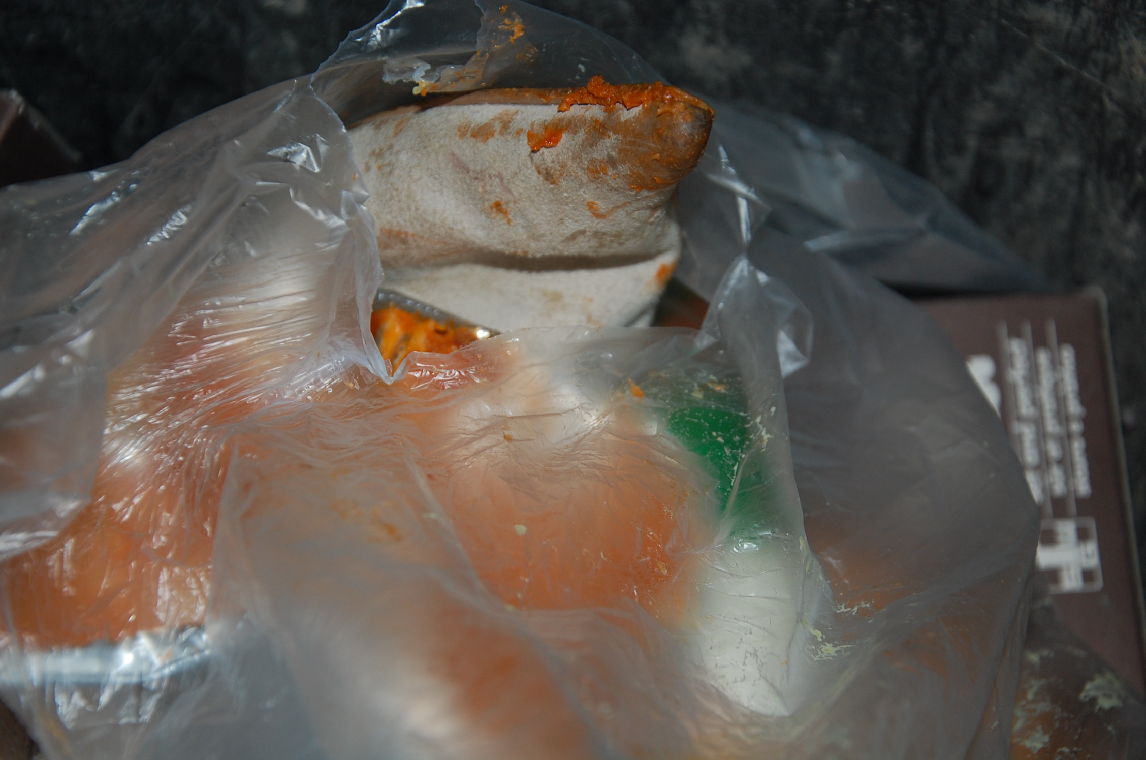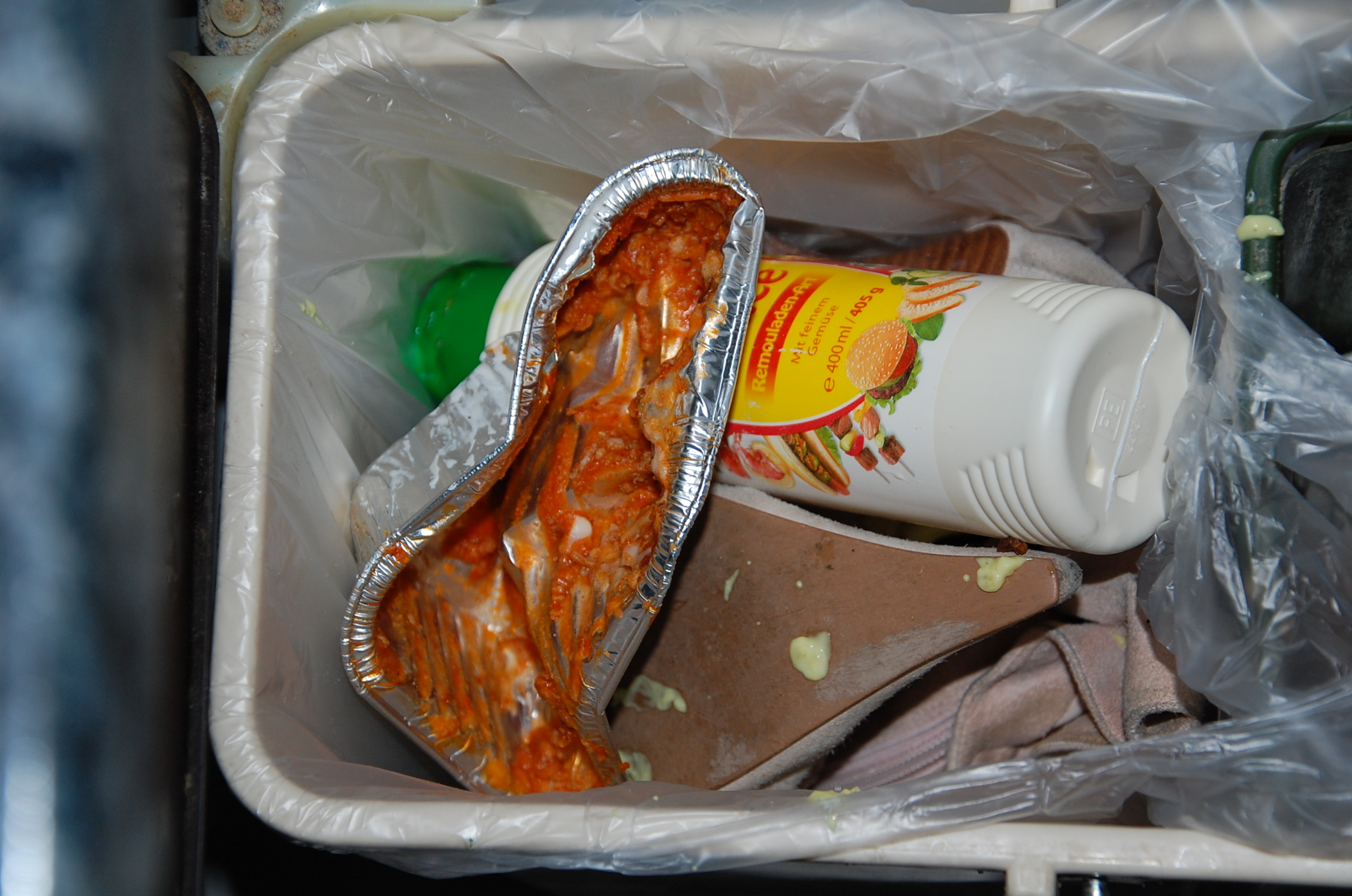 Einige Tage später stand der provisorische Kellermülleimer zur Leerung an. Der Inhalt wurde zur weiteren Verwendung der Mülltonne übergeben.