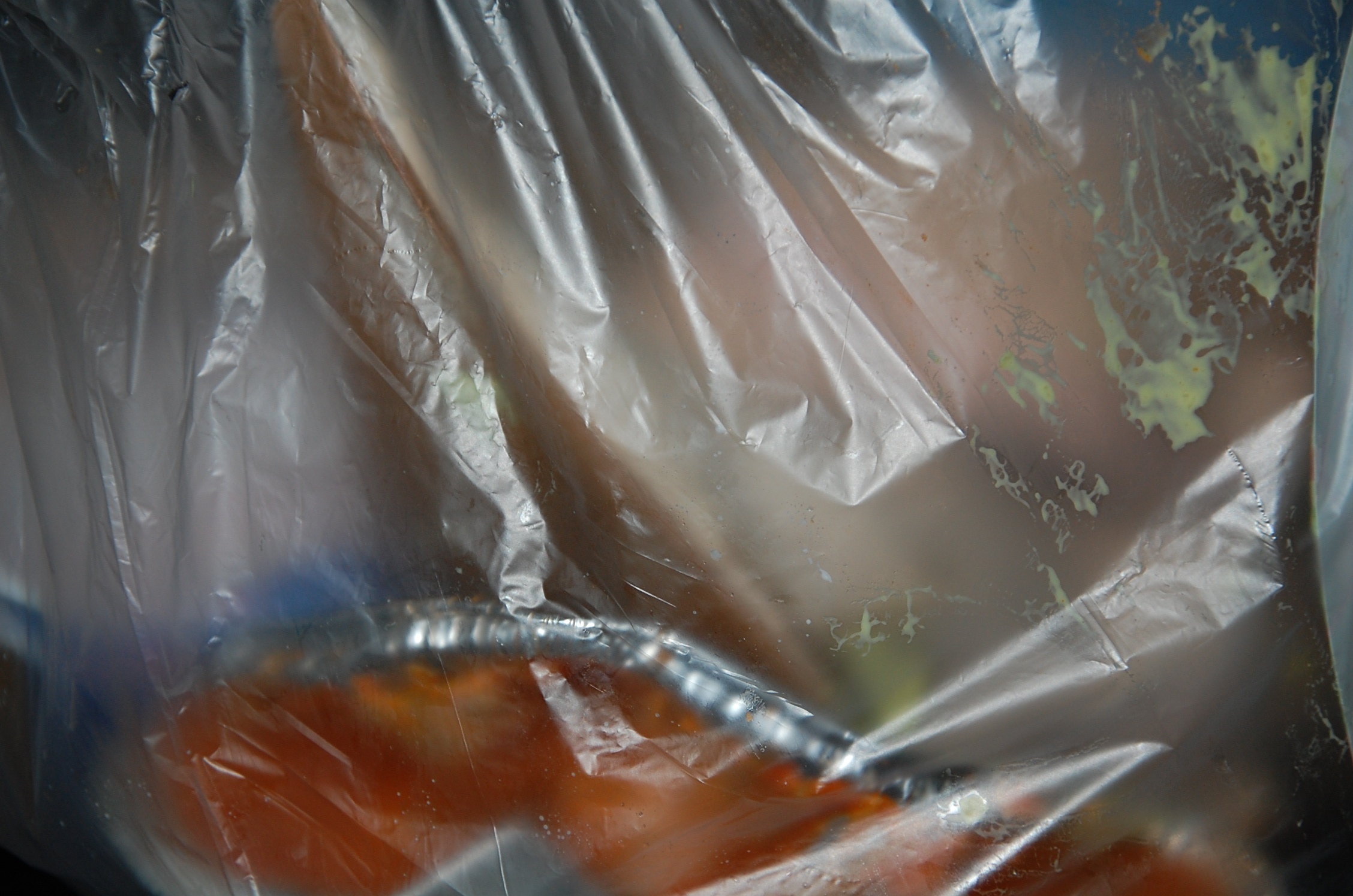 Mein Freund (Ist er das auch noch weiterhin? Ich habe im Augenblick keine Ahnung.) hält in der Wohnung noch Ausschau nach weiterem Müll. Er findet nichts mehr. Jetzt hängt es auch die zweite Lausche über die Klinke. Der Inhalt des Beutels wird dabei zusammengedrückt. Die Vorstellung, wie meine Stiefel nun völlig vom Dreck versaut werden, gefällt mir überhaupt nicht. Viel schlimmer kann es nicht mehr kommen.