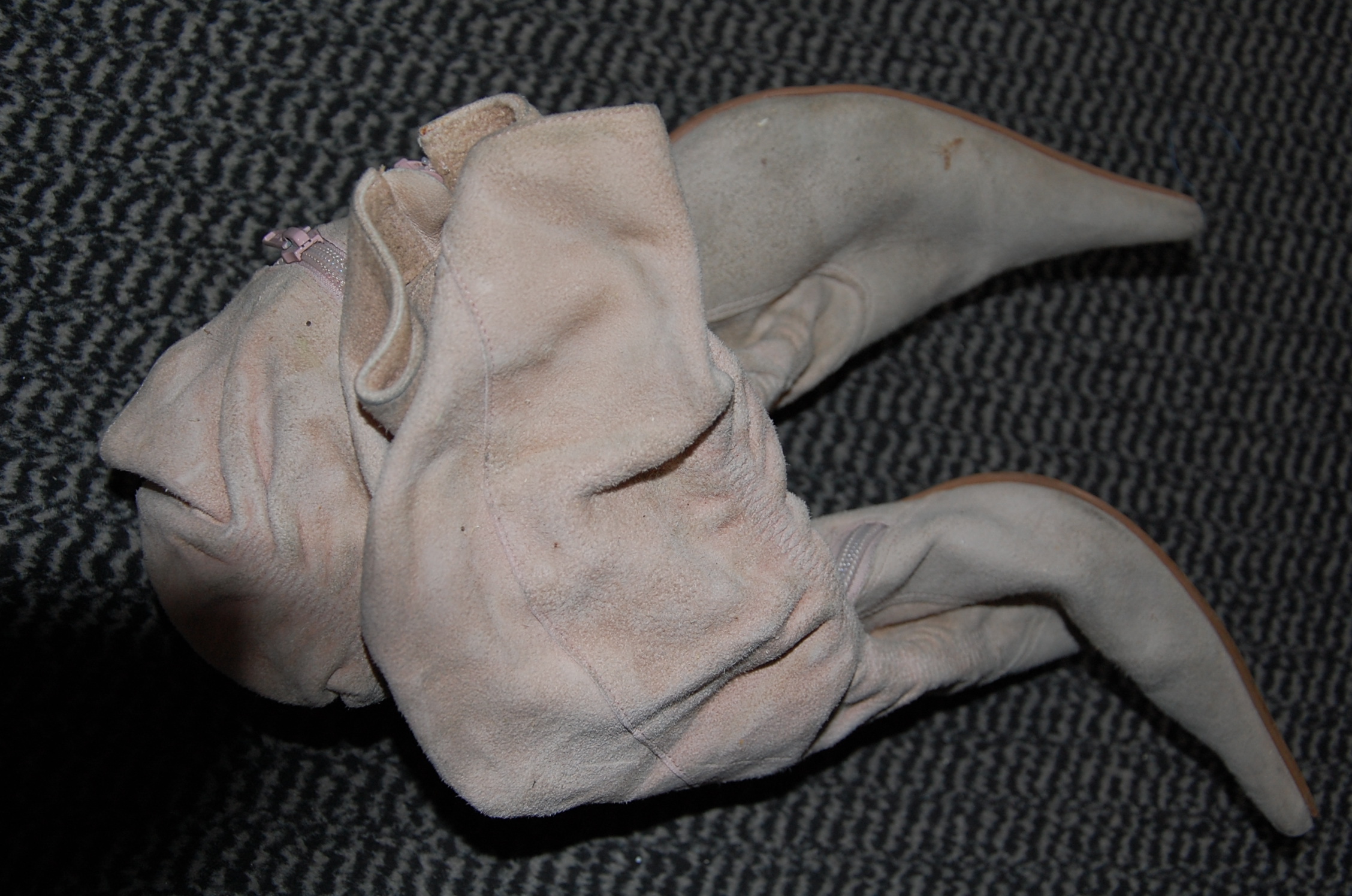 Als ich vor die Haustüre trete, begegnet mir wieder das tolle ostwestfälische Wetter – leichter Nieselregen. Aber das kann mich nun auch nicht mehr schocken. Auf dem Weg zum nahegelegenen Bäckerladen bemerke ich, wie sich die Stiefelspitzen von der Feuchtigkeit auf dem Asphalt langsam dunkel verfärben. Helle Wildlederstiefel sind vielleicht doch nicht das richtige bei diesem Wetter. Das Leder trocknet sicher wieder. Die letzte Woche bei dem leichten Schnee haben die Stiefel auch überlebt, trotz Streusalz auf dem Gehweg. Und das war durchaus eine weit schlimmere Belastung. Außerdem haben die Stiefel ihre besten Tage schon hinter sich. An manchen Stellen ist das rosa Wildleder schon leicht ausgewaschen und eingetrocknete Flecken zeugen vom stetigen Gebrauch. Absätze sind noch OK, obwohl bei der letzten Reparatur die abgestöckelten Messingplättchen nur durch Gummiplättchen ersetzt werden konnten und die Spitzen – naja sind schon ein wenig blank gestoßen.