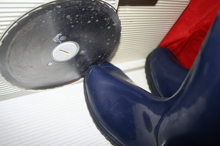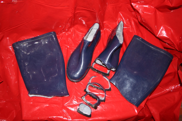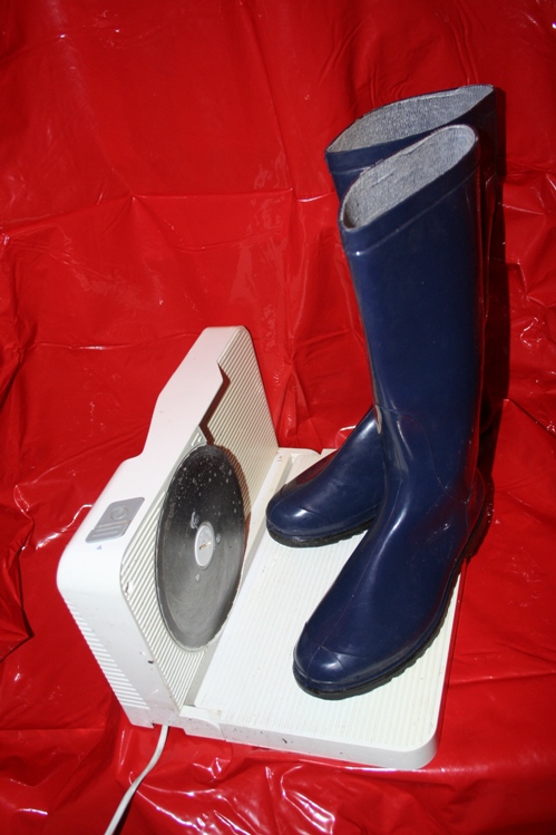 Wenn ich schon nicht über eine blaue Brotschneidemaschine verfügte, so doch über blaue Gummistiefel.