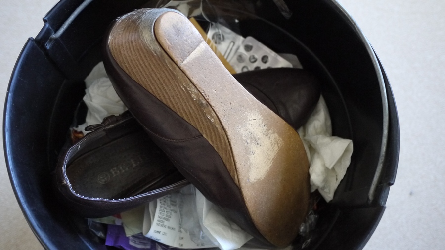 Fertige Keilballerinas entsorgt