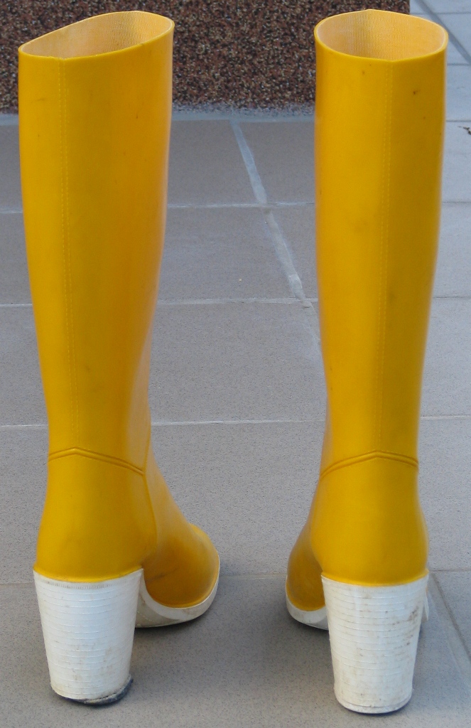 Das erste mal in den neuen Absatzgummistiefeln: "Bin ich nicht hübsch in meinen neuen hohen Gummistiefelchen"