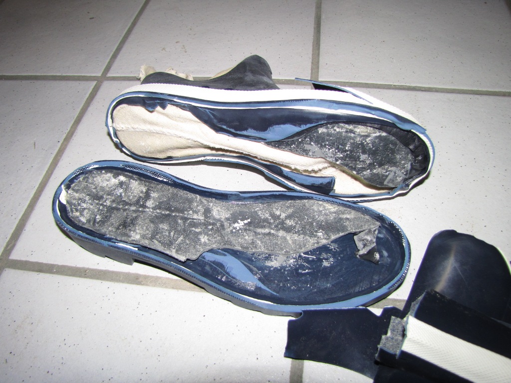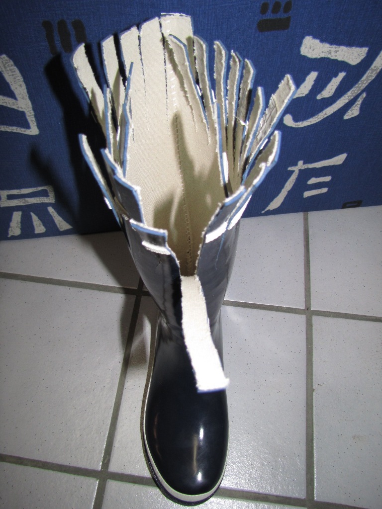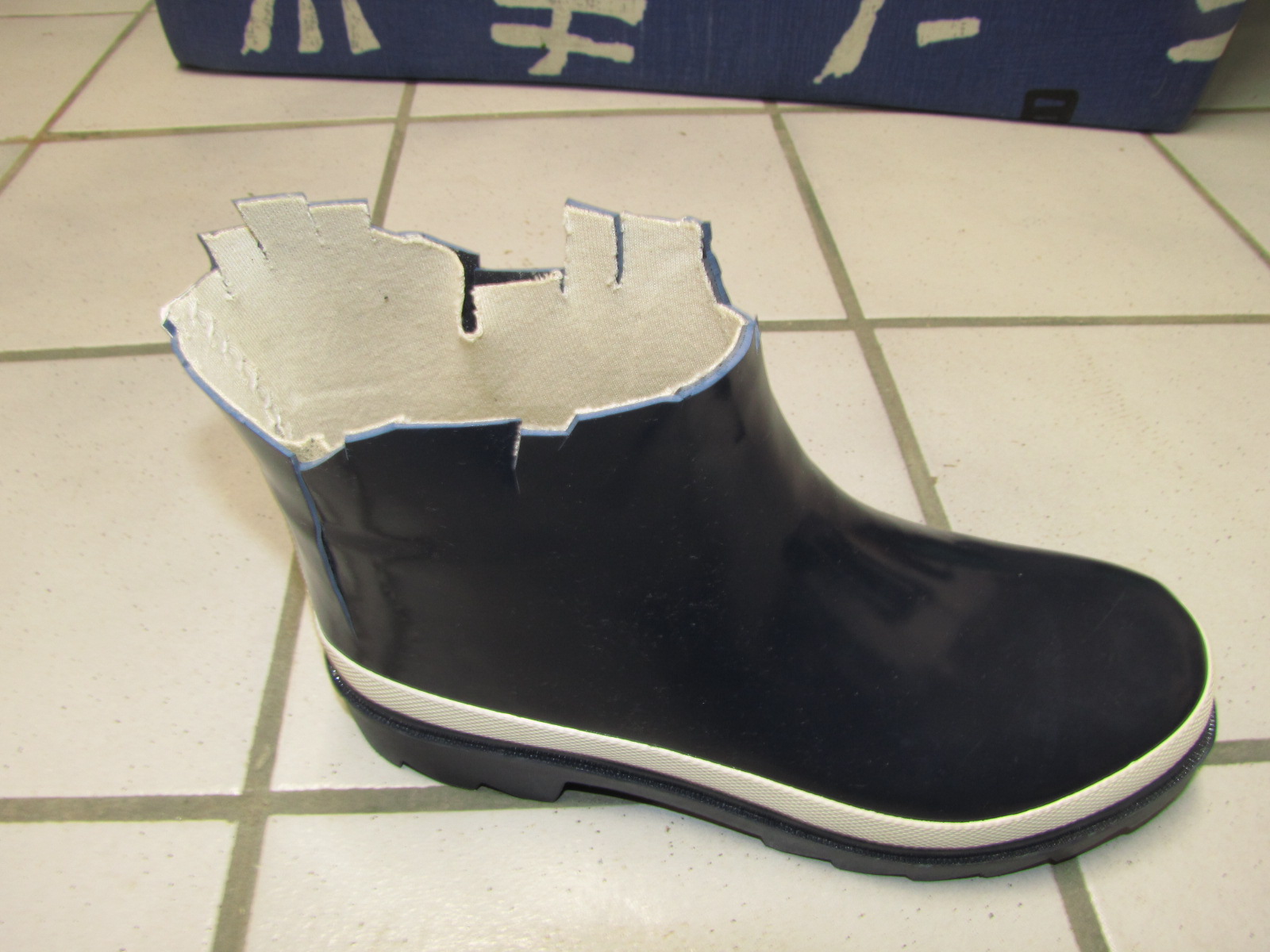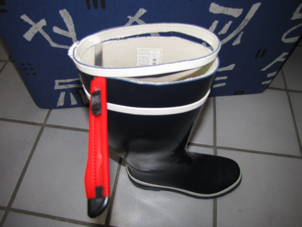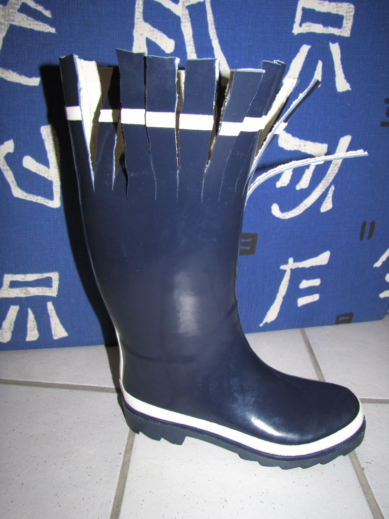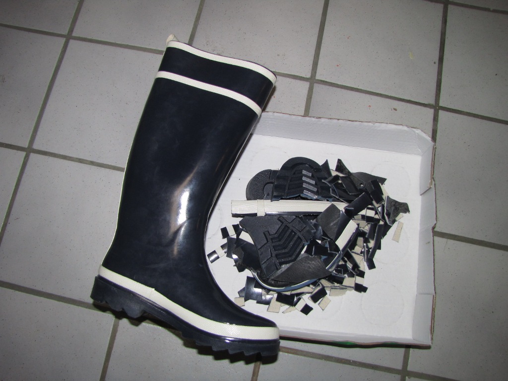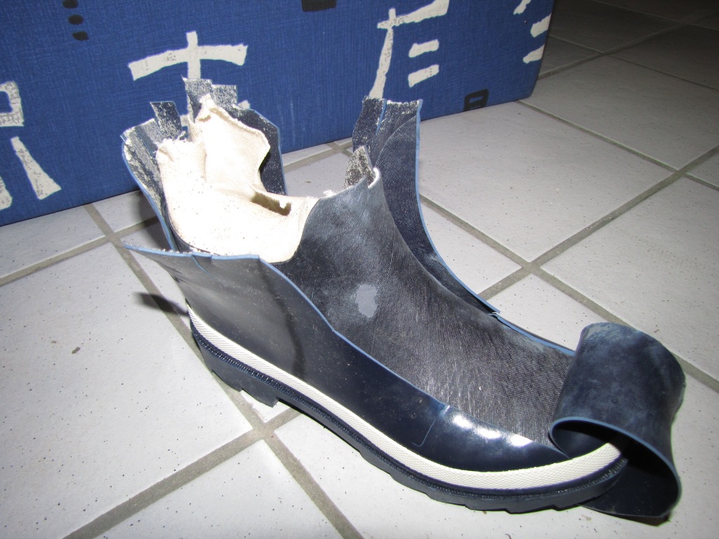 Meine Freundin hatte neue blau glänzende Gummistiefel von einer bekannten geschenkt bekommen. Als sie sie später einmal anprobiert hatte, musste sie feststellen dass sie ihr viel zu klein waren. Als ich ihr beim Ausziehen helfen musste und sie sagte stell sie in den Keller hatte ich schon im Kopf wie die schönen blauen Gummistiefel enden würden
