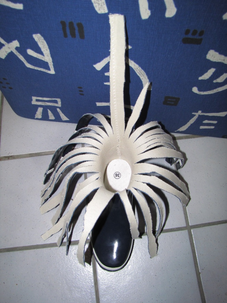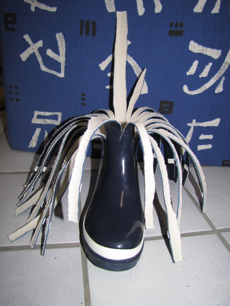 Bin ja total gespannt, was mit dem zweiten Stiefel geschehen wird. Ein Tipp von mir wäre, mit einem Schraubenzieher ein paar Löcher hineinzustechen und ihn dann mit Wasser zu füllen; und schon hast Du einen kleinen Springbrunnen.