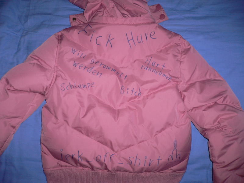 Meine alte "jerkoffshirt" Winterjacke. Die hat schon fehlende Teile wie ein Ärmel und einen Tasche. Auf dem Rücken ist sie etwas beschmiert. Kapuze fehlt glaube ich auch. Ich hoffe überhaupt, das ich die noch habe. Ich schau morgen mal nach.