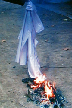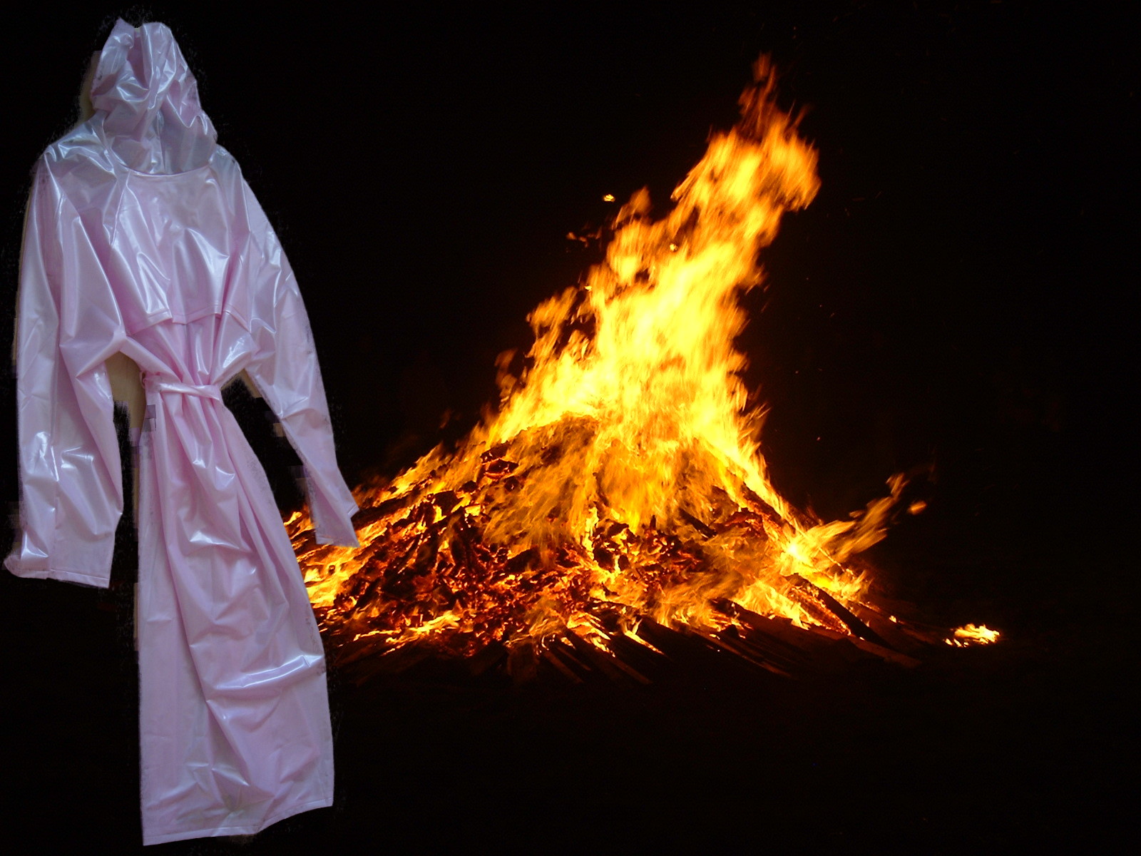 Zuerst schleifte sie das Mäntelchen zum Feuer
