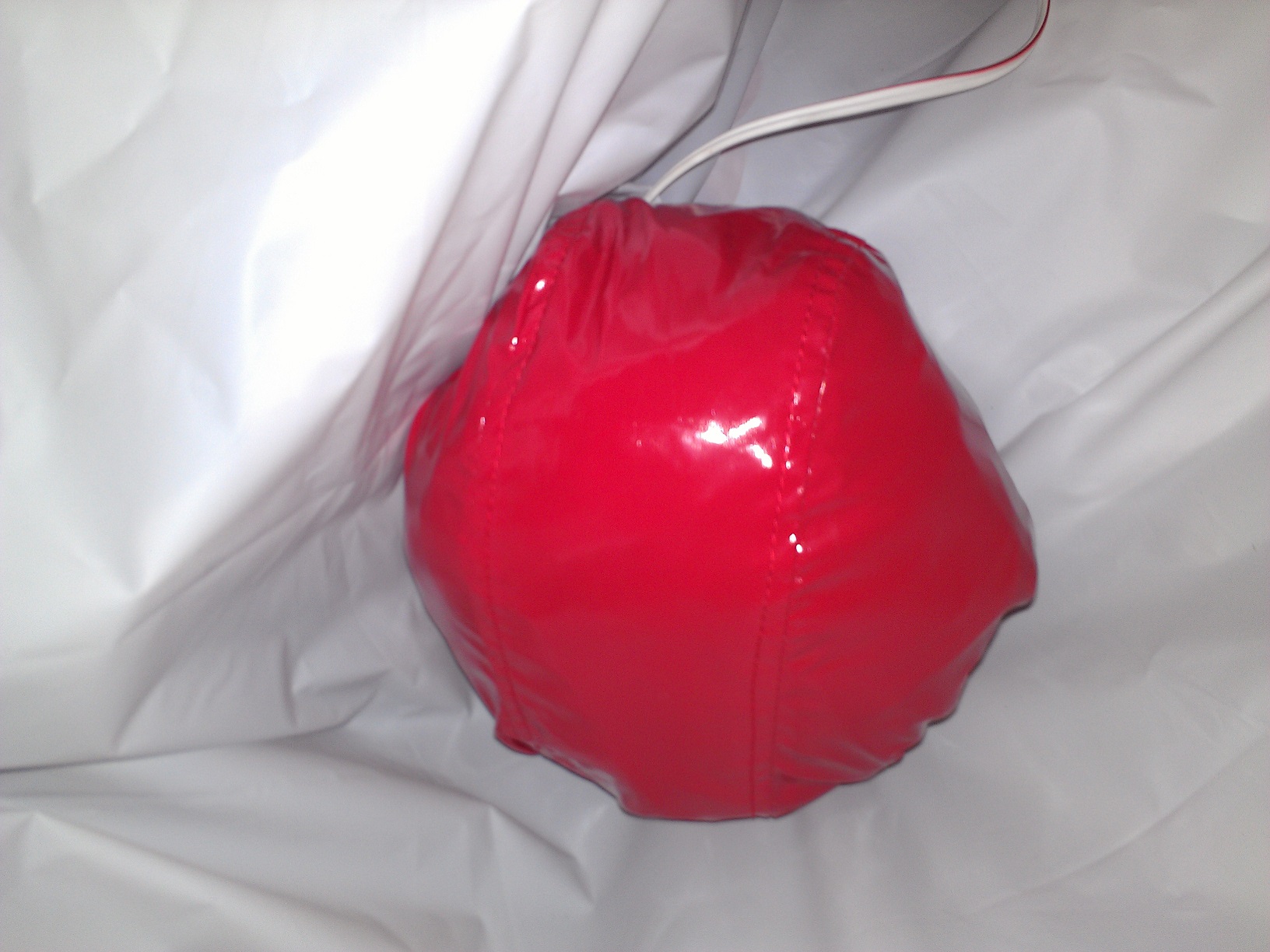 Es handelt(e) sich um eine hübsche Lackjacke mit Kapuze, welche von der einen Seite her in die andere gefaltet wurde. D.h. ein Arm wurde in den anderen hinein gezogen. Dann wurde ein Feuerwerkskörper in den zweifachen Arm gesteckt. Es handelt sich um einen sogenannten Flashing Thunder. Der sieht aus wie eine Tischbombe in klein. Er wirft mit Hilfe einer Treibladung einen Knallkörper aus, der bei normaler Anwendung in ein paar Metern Höhe detoniert. Ich habe ihn mit einer elektrischen Zündvorrichtung versehen.