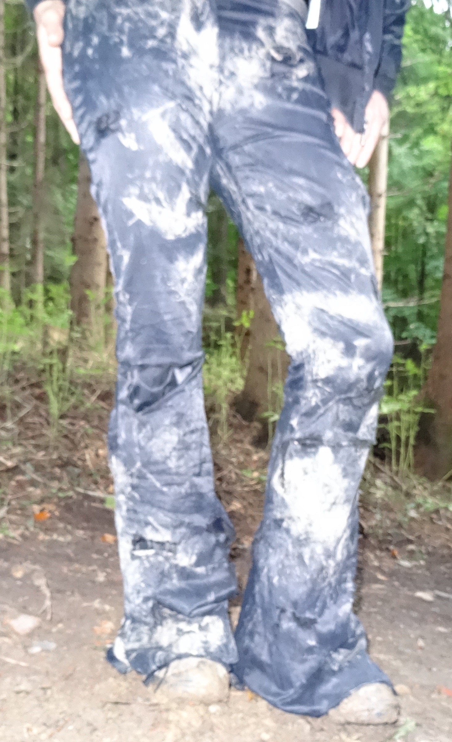 Nachdem ich die geile Hose mit dem Messer bearbeitet hatte, noch tragbar (lach) hab ich einen kleinen Spaziergang in der Hose gemacht. Auf dem Waldweg (gut besucht) kam mir die Idee die Hose auf den Weg direkt neben einer Mülltonne zu legen. Und siehe da nach einer halben Stunden war die Hose in der Tonne!
