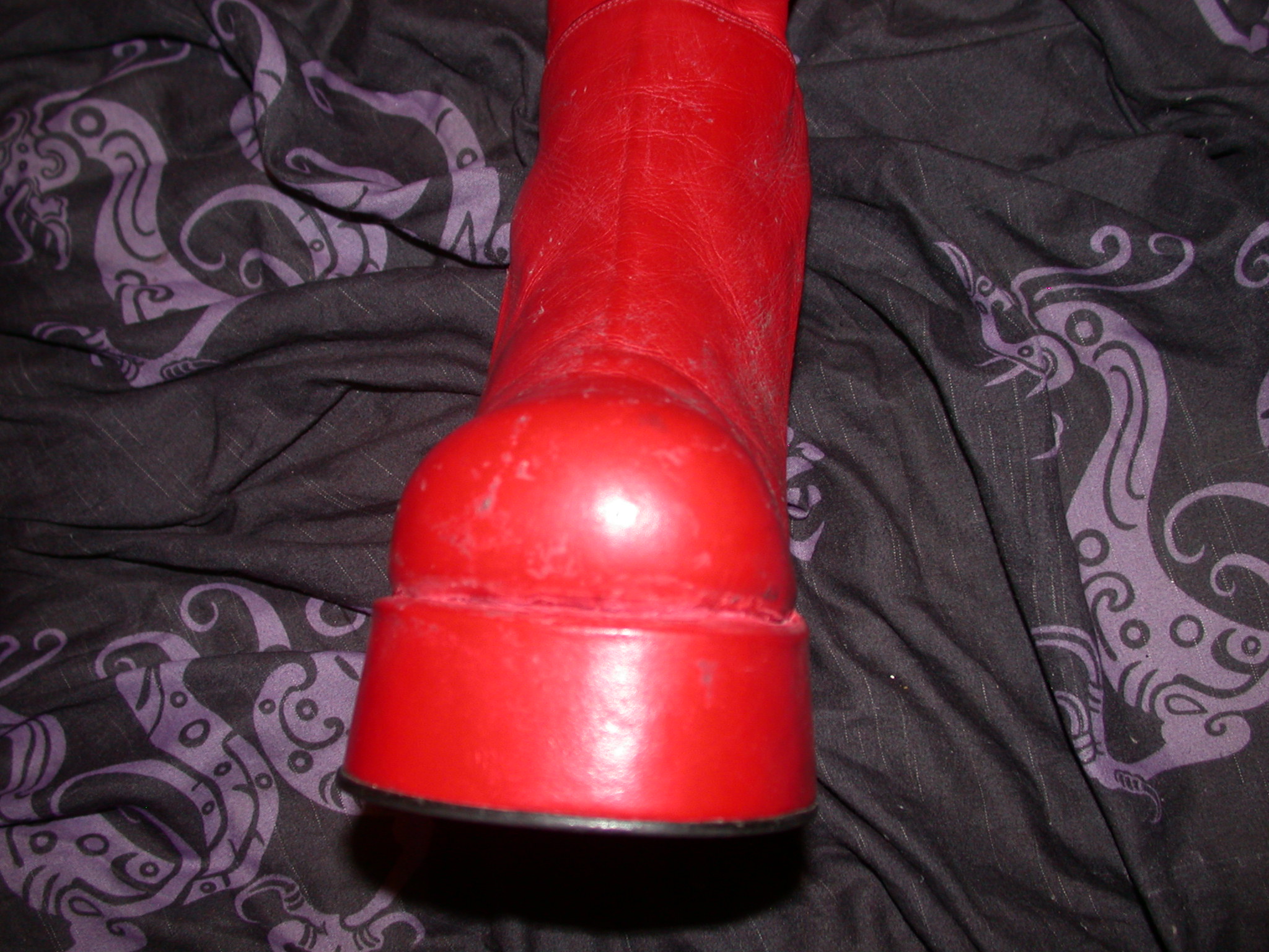 Diese roten Plateaustiefel wären ideal für den Sperrmüll. Wenn die gepresst werden ...