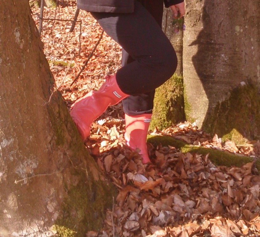 Frauchen hat neue Gummistiefel bekommen Hunter short gloss in hellorange und sie trägt sie gerne zum spazierenlaufen - hier die ersten Bilder
