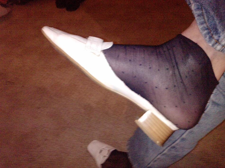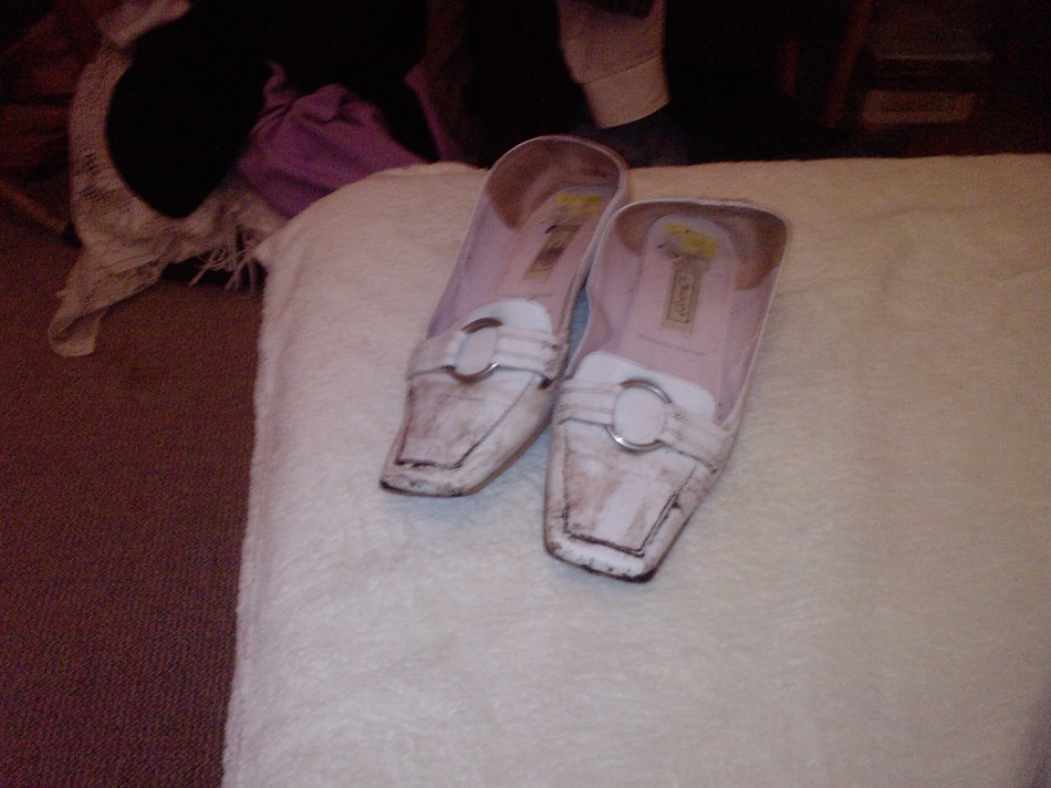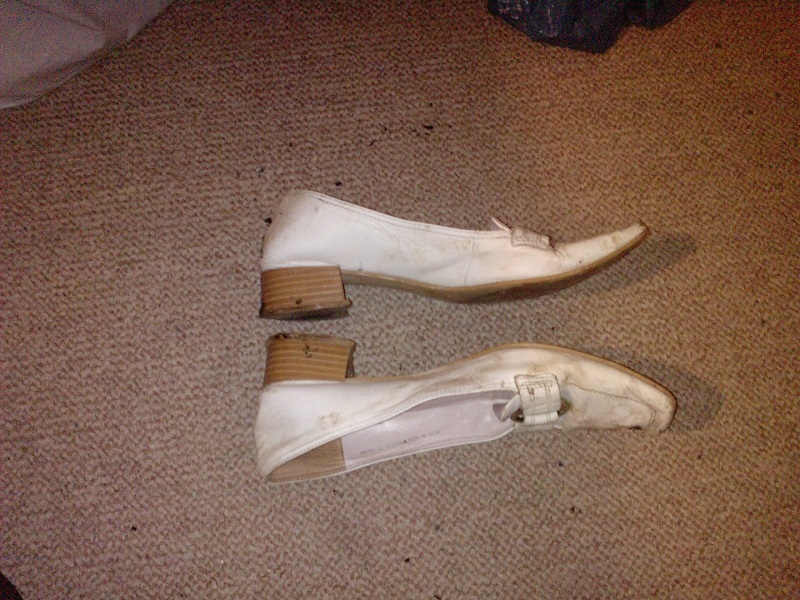 Nun sind die schwarzen Vitage Pumps bei Ebay genau wie zwei weiße Echtleder Slipper von Janet D, die einer extremen Hölle durch Marion erspart blieben.
