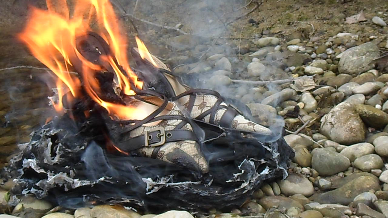 Besonders beeindruckend, leider auf den Bildern nicht wirklich gut zu erkennen, wie schön die Absätze brannten. Von Anfang bis zum Ende eine einzige Flamme, beim einen Schuh wurde er komplett zerfressen, beim anderen blieb noch ein Rest erhalten.