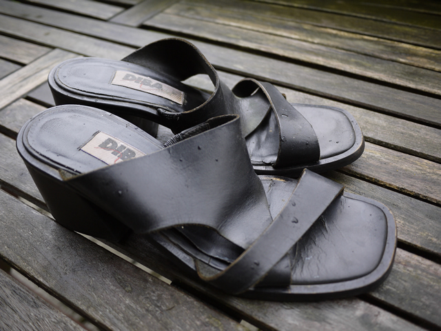 Das Futterleder der armen Pantoletten ist von den Ausdünstungen ihrer Füße bereits kräftig "angedaut" und zerbröckelt förmlich.