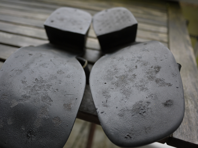 Das mache ich heute nicht mehr, da sich der Ursprungszustand des Trittchens visuell ändert. Ich finde es besser, wenn das fertige Tragebild möglichst lange erhalten bleibt. Das ist für mich persönlich nur dann interessant, wenn sie danach wieder authentisch im Alltag getragen werden. Die Spuren verschwinden dann wieder langsam, neue kommen hinzu.