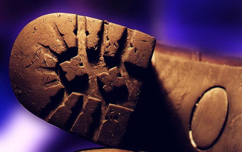 Ich habe dann später herausgefunden, dass man bei kurzfristiger Wärmebehandlung z.B. mit einer Herdplatte oder der warmen Luft aus einem Toaster für ein paar Sekunden (niemals Kontakt herstellen, nur heiße Luft, sonst ist die Sohle sofort deformiert, verkokelt, fremdartig!) diesbezüglich große Erfolge erzielen kann: Die Glasscherbe erzeugt ja ein winzig kleines Loch, bzw. einen Schnitt. Die kurzfristige Hitze belastet das Material vor allem an der winzig kleinen Kante, des Lochs der Glasscherbe oder des Fremdkörpers. Diese Kante "verbrennt mikroskopisch" und zieht sich beim Abkühlen um 0,Xmm zusammen. Danach erkennt selbst jeder Fielmannkunde die kleinen Löcher mit eingetretenen Fremdkörpern auf der gesamten Sohle.
