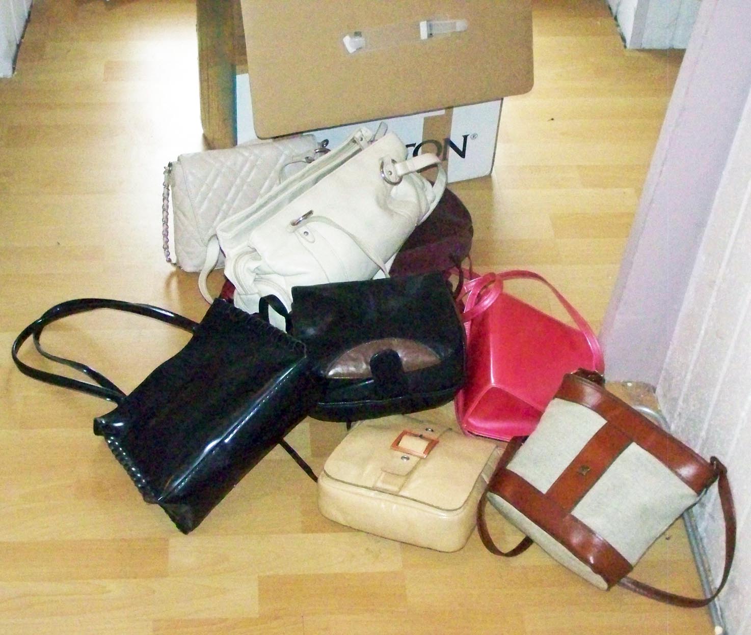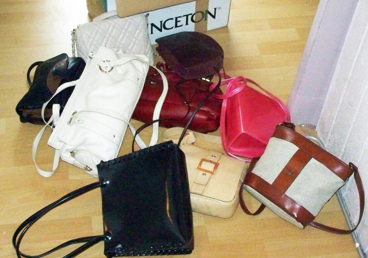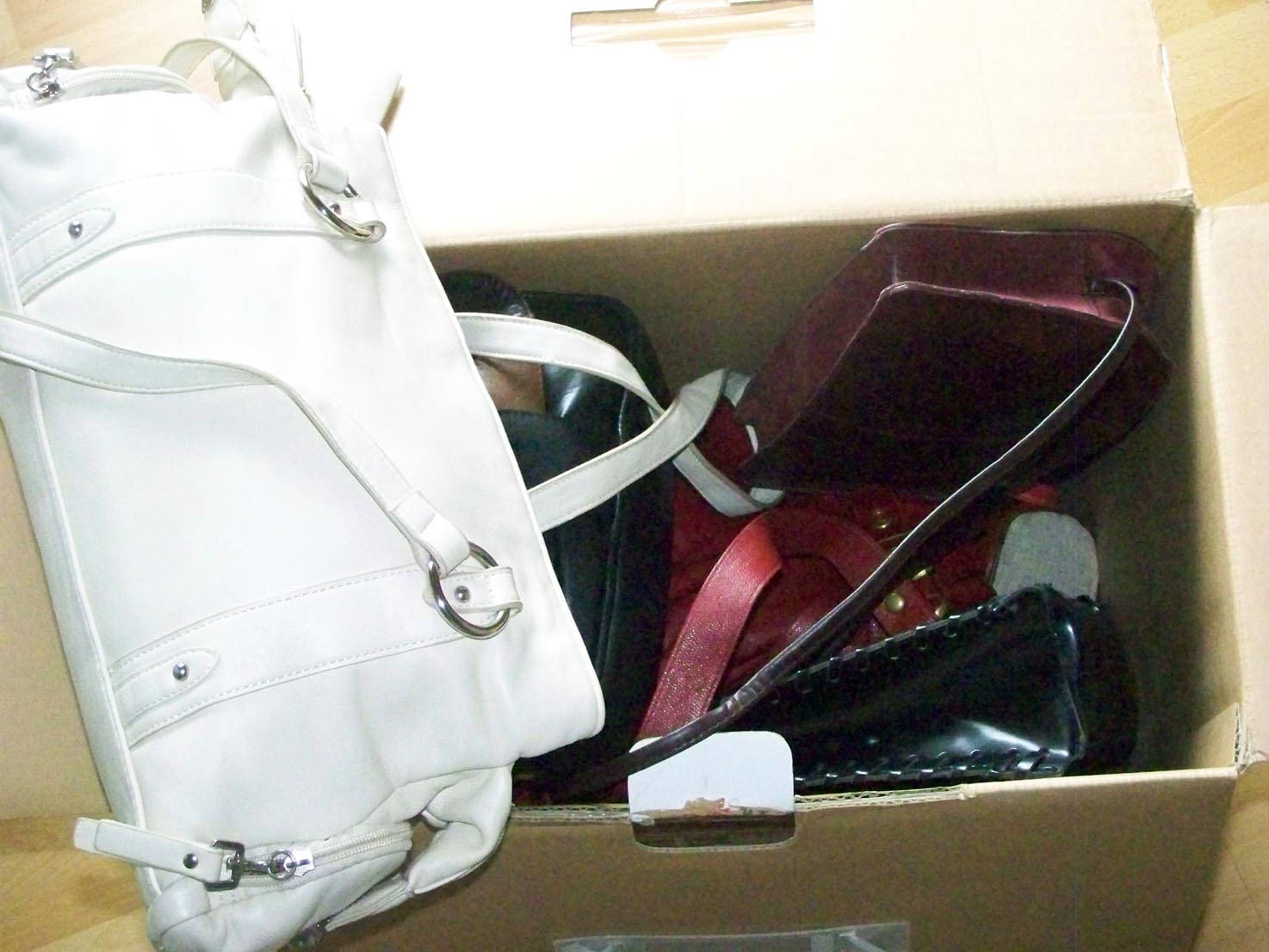 Da ich die Dame bereits einige Jahre kannte, wusste ich auch, das es dort einige nette Sachen zum Finden geben musste. Besonders ihre große weiße Handtasche hatte es mir schon eine längere Zeit angetan. Also habe ich mich Spät in der letzten Nacht auf die Suche begeben. Direkt in der Nachbarschaft ist das Plündern von Sperrmüll immer so eine gewisse Sache, wobei man nicht unbedingt entdeckt werden möchte. So war es dann etwa halb drei Uhr morgens als ich mit meiner Suche anfing. Es hat auch nicht sehr lange gedauert, bis ich einen großen Karton gefunden habe. Als ich ihn öffnete lag darin zuoberst die von mir begehrte weiße Handtasche, zusammen mit ihren restlichen Handtaschen. Ich habe zumindestens keine weiteren gefunden, auch keine Stiefel, leider.