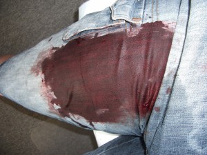Das war nur nen bisschen venöses Blut aus der Vene in der linken Ellenbeuge.