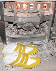 Das bedeutete im Umkehrschluß: Du sahst jemanden mit abgetragenen Schuhen auf der Straße, dann konntest du mit ziemlicher Sicherheit annehmen, daß diese in nächster Zeit in Flammen und Rauch aufgehen werden. Sofern der/die Träger/in nicht in einer Neubauwohnung wohnt, aber auch diese Schuhe wurden zum großen Teil an Familienmitglieder oder Bekannte zur Verbrennung weitergegeben.