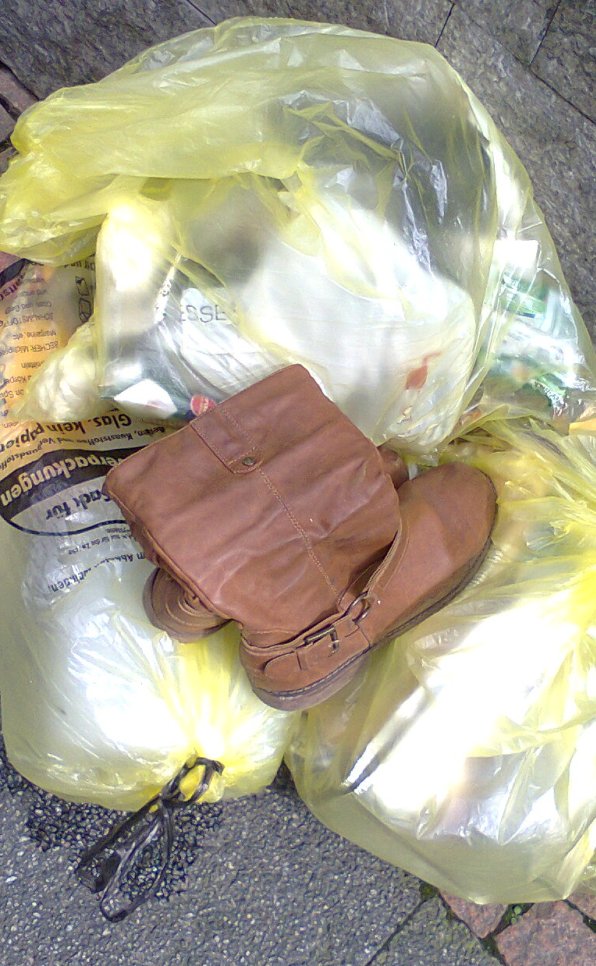 Hi stiefelboy_1, nein, konnte sie leider nicht retten. Das war in der Fußgängerzone einer Süddeutschen Stadt. Ich war dort mit meiner Frau beim Shopping. Als sie in einem Geschäft war, bin ich noch mal zurück um das Bild zu machen. Ich kann so was ja auch nicht einfach ignorieren.stiefelboy_1 hat geschrieben:Die armen Stiefel, ich hoff Du hast sie gerettet!