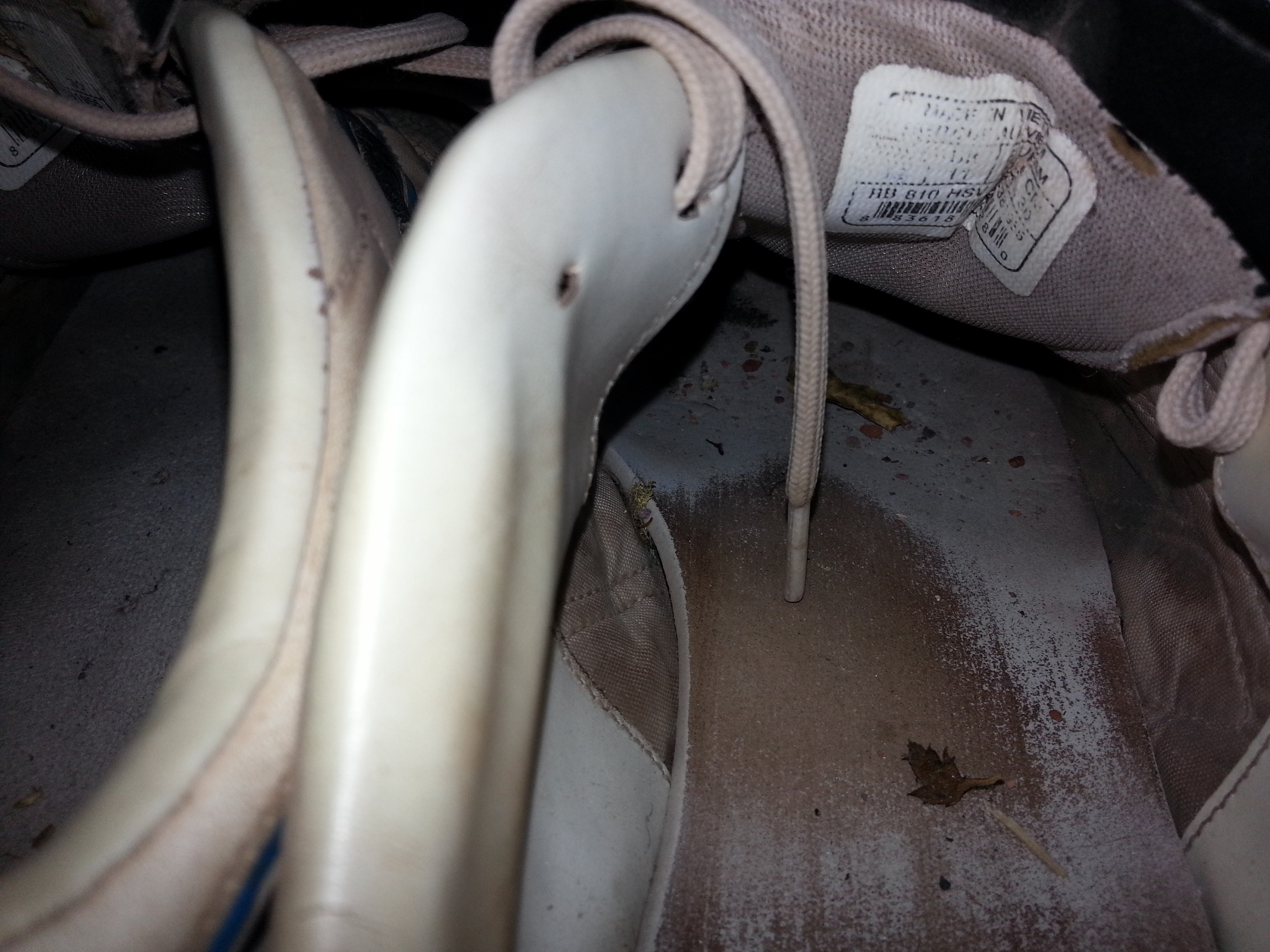 Dann standen die wieder da. Von da an standen die nur noch unter der Bank und es war kaum Bewegung an den Schuhen zu bemerken. Im Herbst sammelte sich dann Laub um und in den Schuhen an aber keine weitere Veränderung daran. Es sah so aus, als ob die Teile bereits vergessen seien. Ich kam nun mindestens 1 mal pro Woche am Haus vorbei. So auch an diesem Rosenmontagnachmittag. Im Ort tobte der Rosenmontagszug und spazierte so durch die Seitenstraßen, da ich mit Karneval nichts am Hut habe. So kam ich auch an dem Haus mit der Bank vorbei. Dort erstarrte mir fast das Blut in den Adern. Vor dem Haus war aufgeräumt und gekehrt worden und die Reebok`s waren auch weg. Schnell schaute ich mich um ob jemand in der Nähe war was nicht der Fall war. Die Mülltonnen stehen dort direkt neben der Garage frei zugänglich. Also Deckel auf und einen Blick hinein geworfen und – Bingo ganz unten auf dem Boden de Tonne nur halb verdeckt von einem Müllbeutel lagen die Schuhe. Also lange Arme gemacht und die Teile rausgezogen.