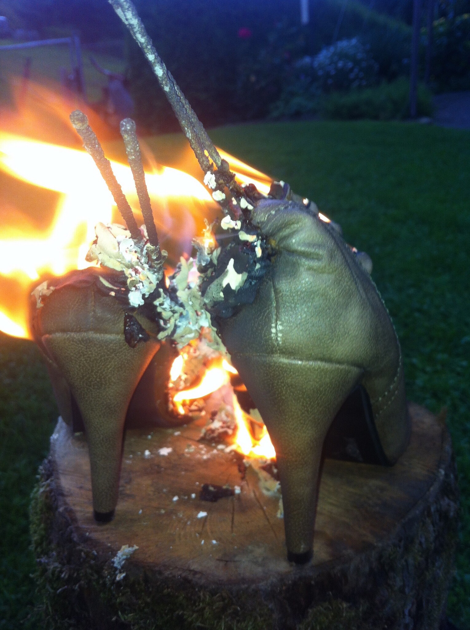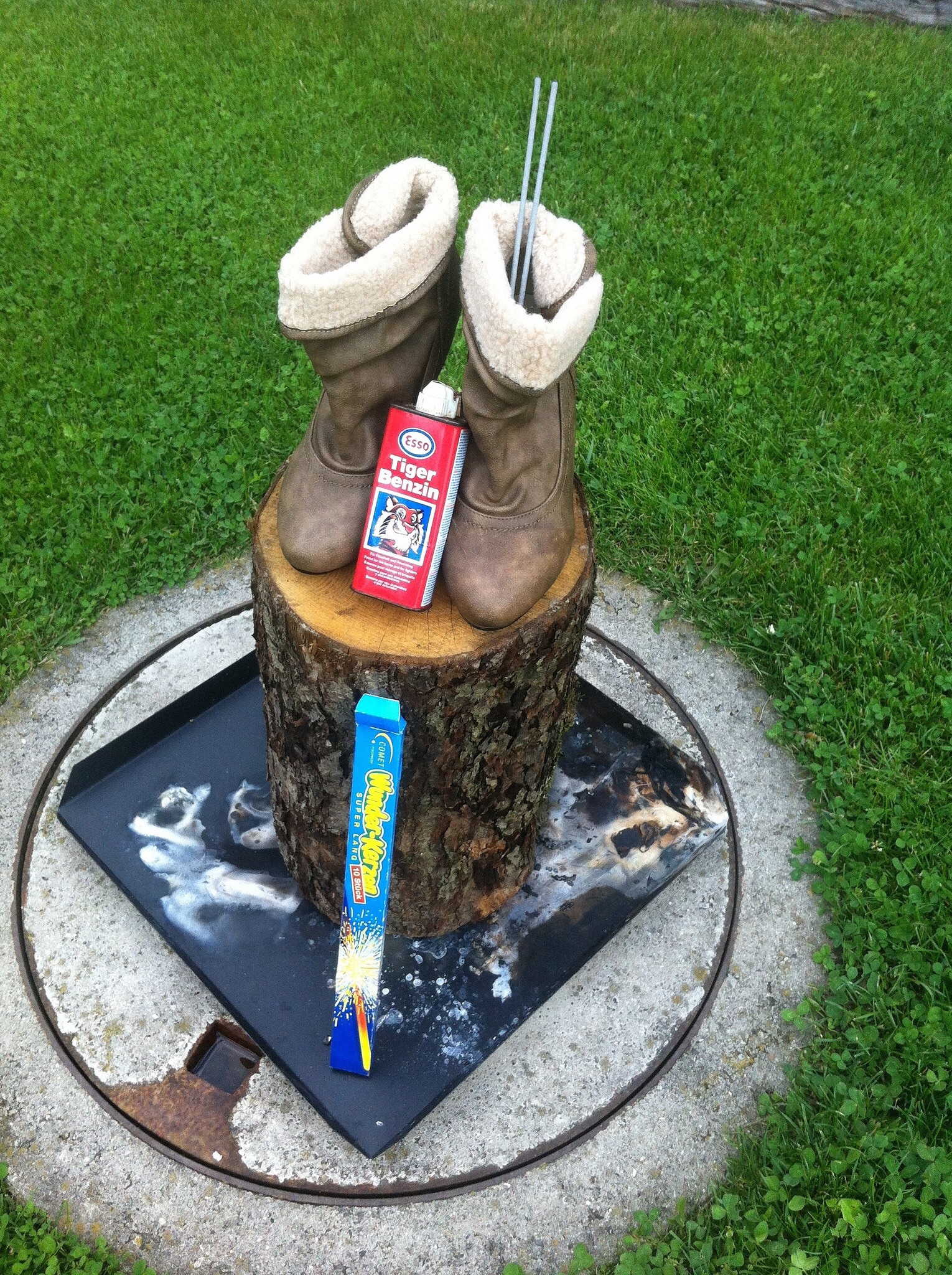 Na, vorher erst mal ein kräftiges Feuerchen mit dünnem Holz, Ballerinas, Sandaletten o.ä.