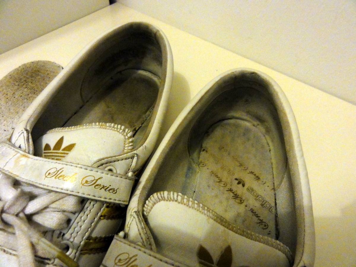 Mittlerweile hat auch sie gemerkt, dass diese Sneakers ihre besten Zeiten hinter sich haben und so werden sie nun bei schmutzigen Arbeiten und zuletzt auch als Malerschuhe benutzt.