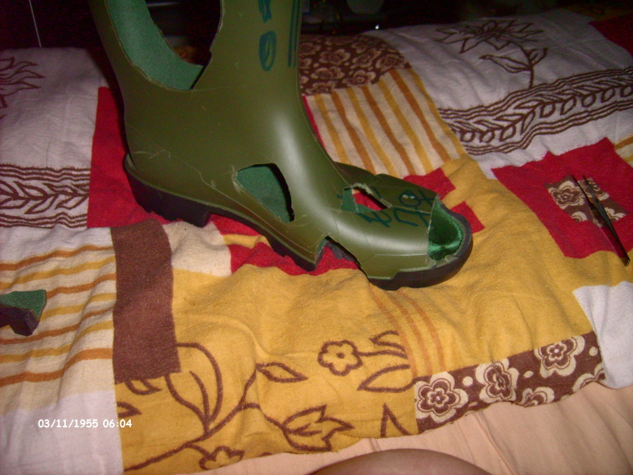 Re: Gummistiefel zerschneiden