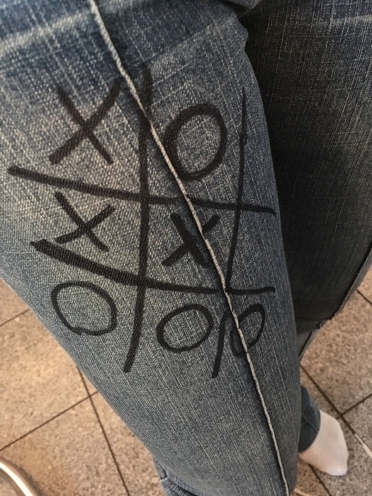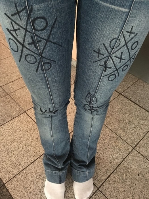 Auch auf ner dunklen Hose geht was und die ist ja zum Glück nur Mittelblau
