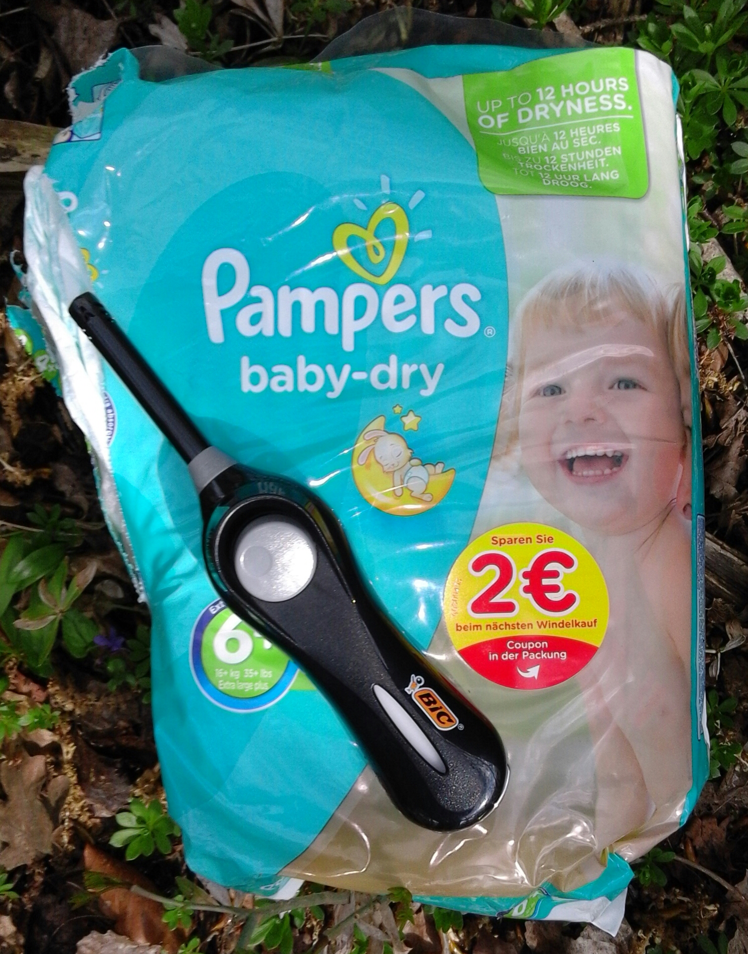 Diese Pampers wollte ich mal testen ob sie mir noch passen. Leider passten sie nicht. Deshalb musste ich sie leider verbrennen.