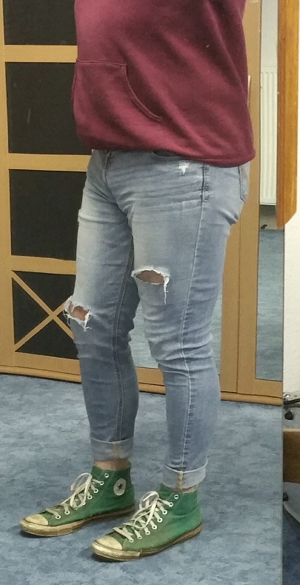 Jacke Pulli und die Chucks gehören auch zu dem Outfit