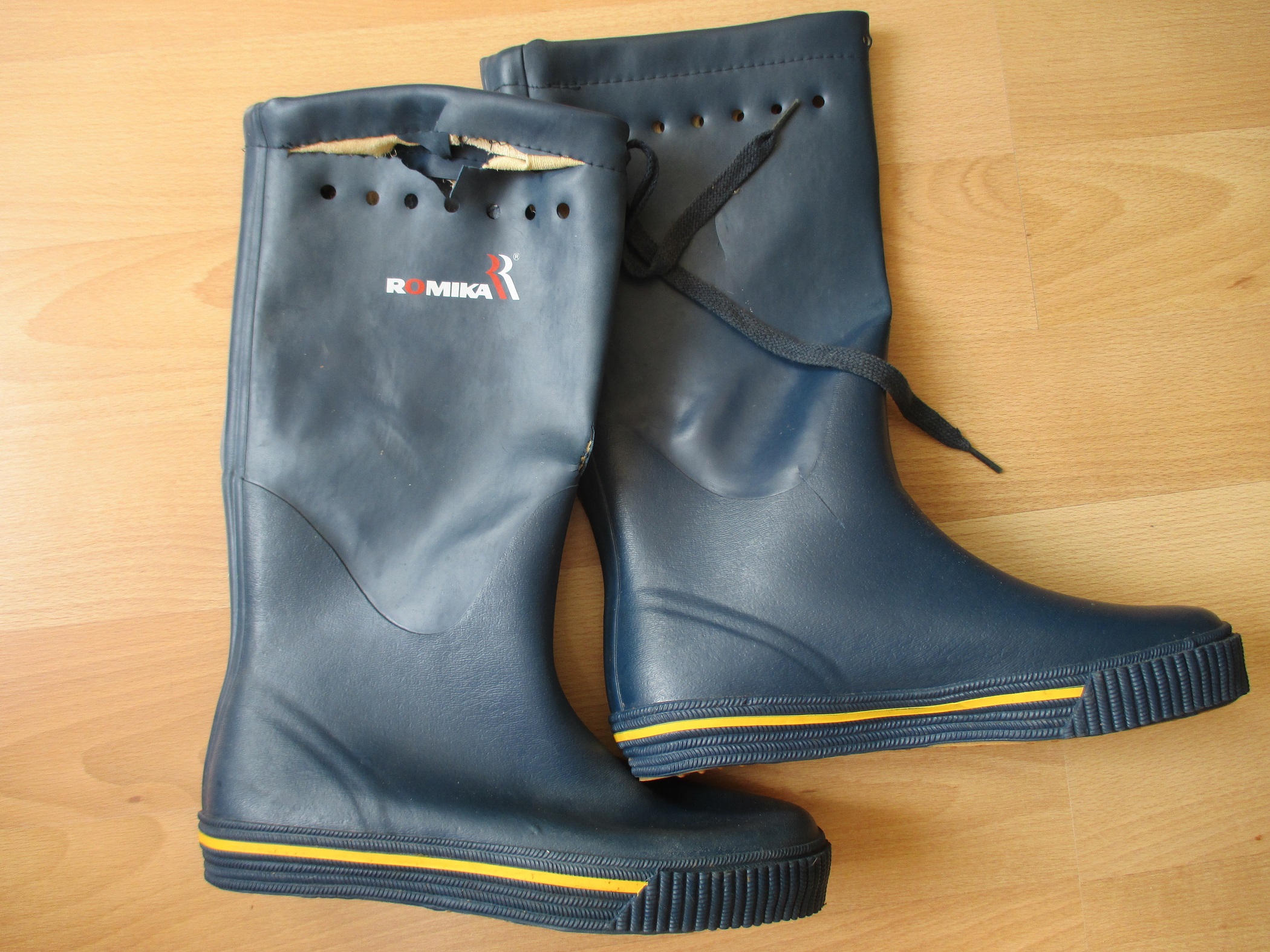 Ich besitze ca. 300 Paar Gummistiefel. Der überwiegende Teil davon sind Segelstiefel. Ich glaube ich habe so um die 50 Paar Romikas. Eine kleine Auswahl davon ist in Flickr unter Segelgummistiefel oder Ronald zu sehen. Im Fotostream kannst Du auch sehen was ich alles so mit einer Forke anstelle oder anderes.^^