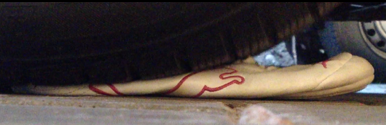 Mit dem Auto drüberfaren finde ich auch geil....ich mache es auch mit Schuhen meiner Süssen die sie noch trägt....stelle sie dann einfach wieder hin;-)kommt auch geil