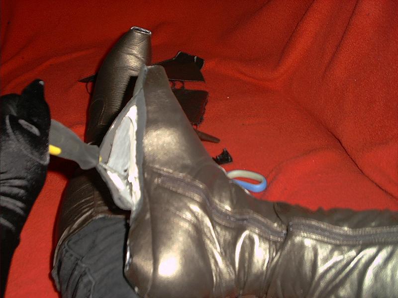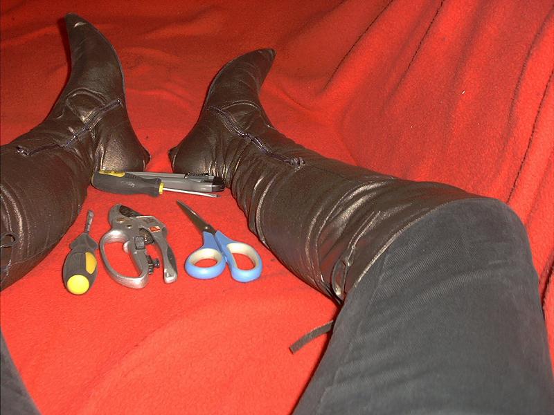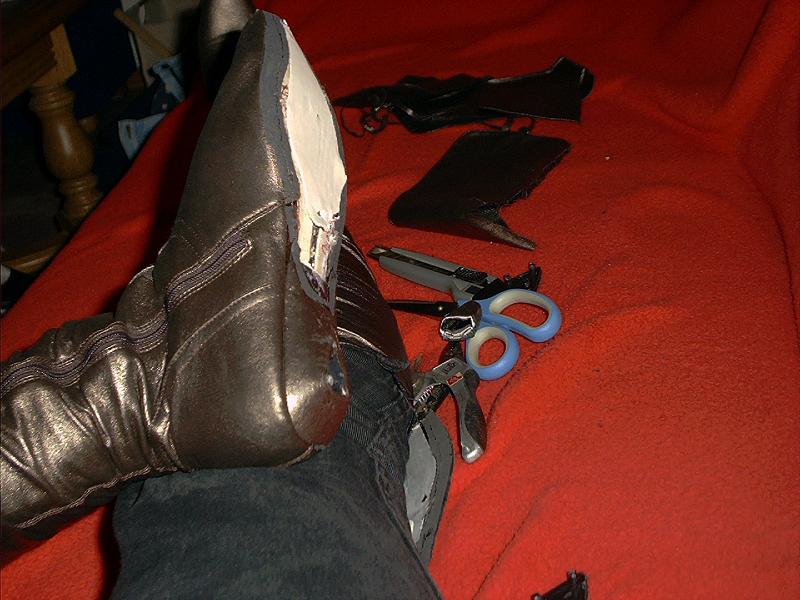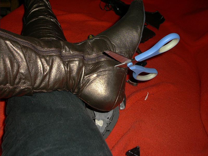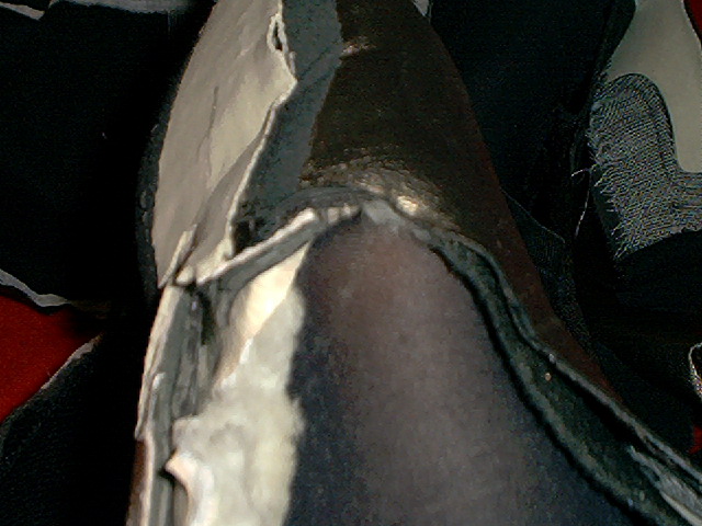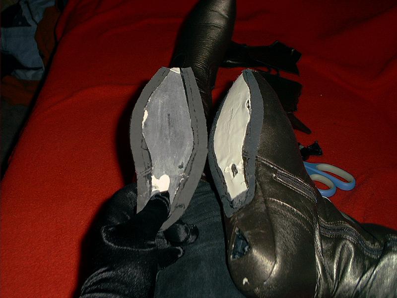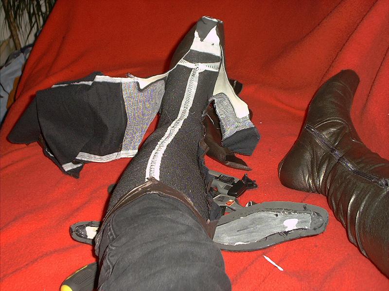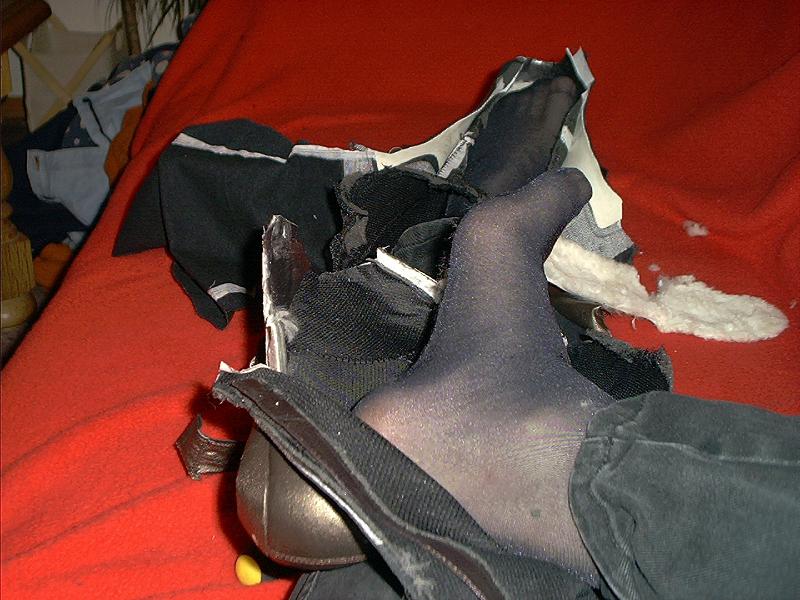 Aber im Ernst: Was ich immer wieder gerne sehe, sind abgerissene Sohlen, sodass die Fußsohlen im Schuh von unten betrachtet werden können.