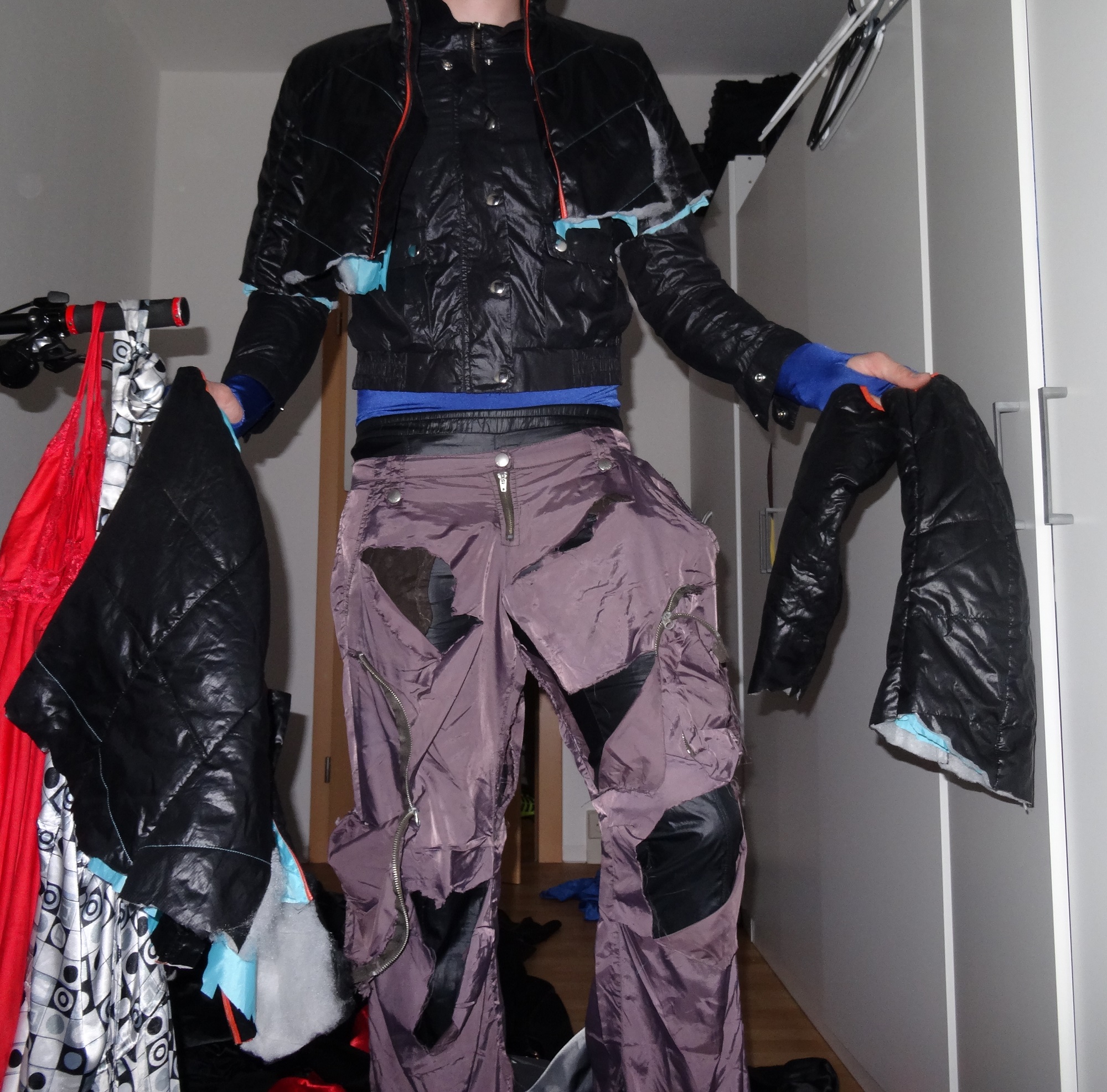 Bei der Hose hab ich das Futter komplett rausgerissen. Bei der Aktion sind schon viele Nähte aufgegangen, an denen ich nur noch ordentlich reißen musste. (Scheiß Ripstop nylon) Die Welt wieder vor einer hässlichen Miss Sixty Hose befreit.