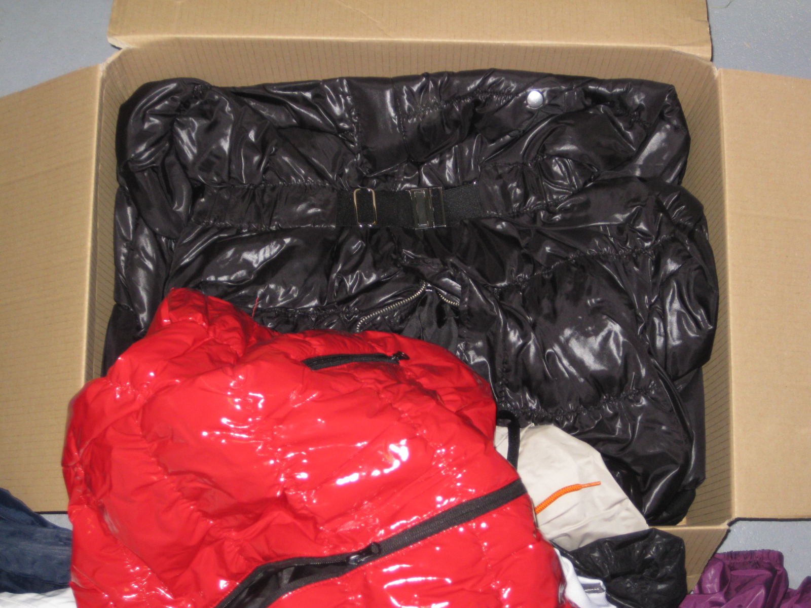 Ich habe eine Kiste mit ein paar Jacken ein noch neuer H&M Mantel und ich glaube 2 Regenhosen abzugeben.