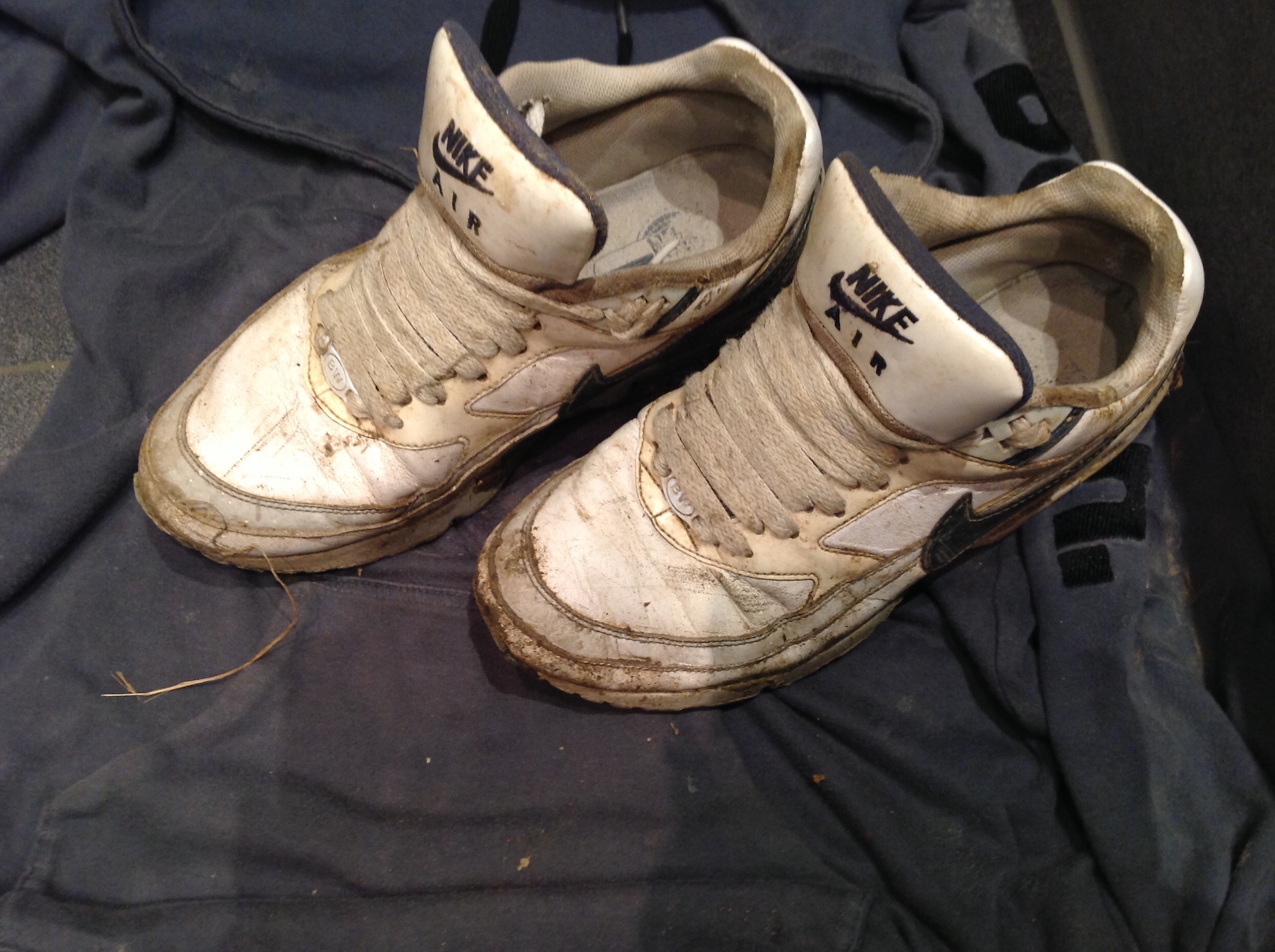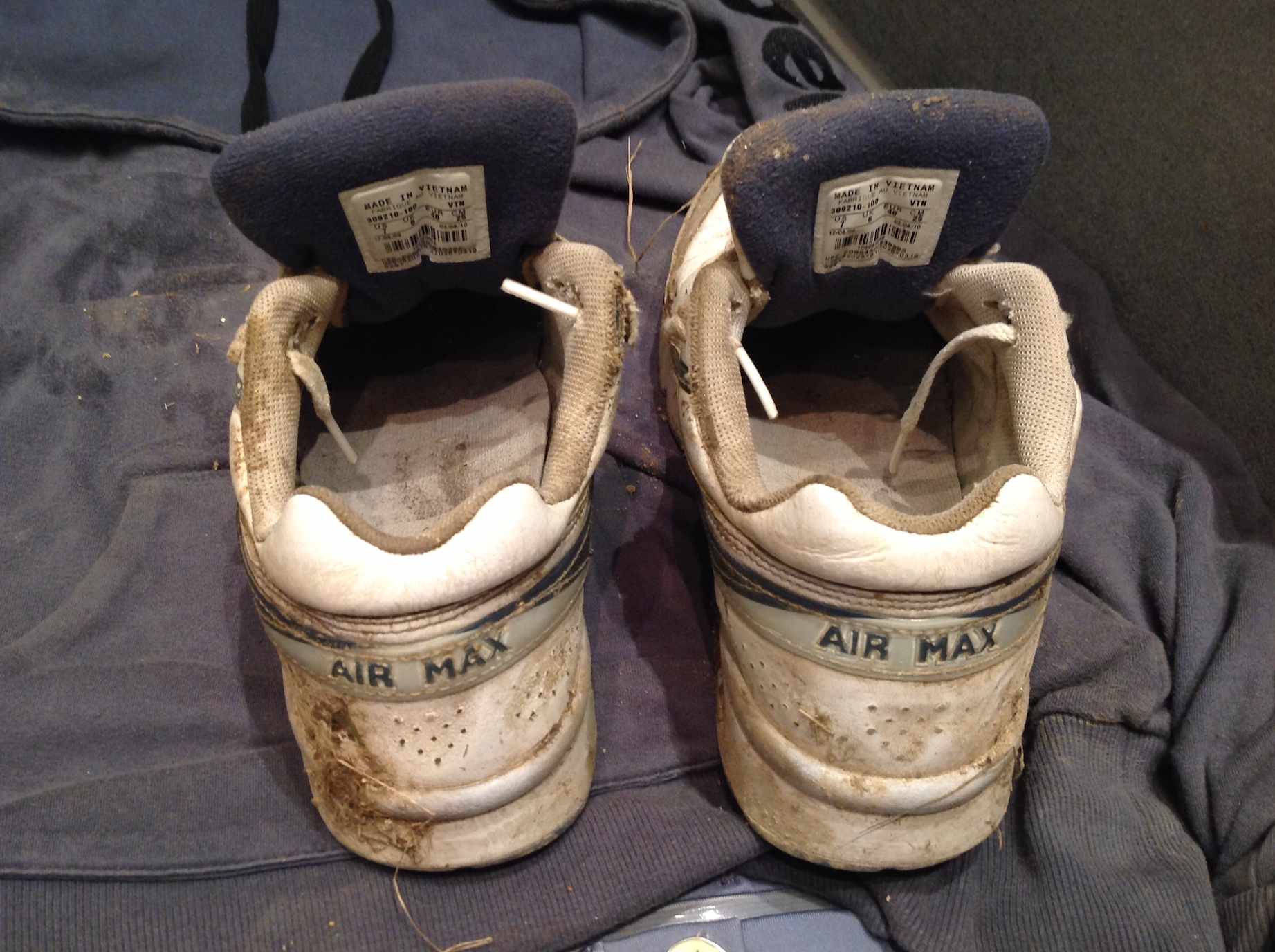 ...die schönen weissen Nike Airmax BW Gr 40 wurden eines Tages mit in den Stall genommen, und seitdem zu Stallschuhen degradiert. Geputzt wird da nix mehr dran, da sie als Wechselschuhe auch barfuss und mit dreckigen Socken aus den stiefeln genutzt werden sind sie mittlerweile auch innen ziemlich versaut. Der Besitzerin alles egal... übel nach Pferdemist stinken die auch mittlerweile... für meinen Geschmack genau die richtige natürliche Vernichtung für so Nikes, was meint ihr?